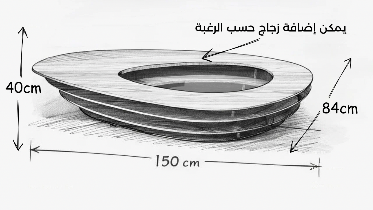(يمكنك تعديل ارتفاع الطاولة أو إضافة زجاج في المنتصف حسب الرغبة