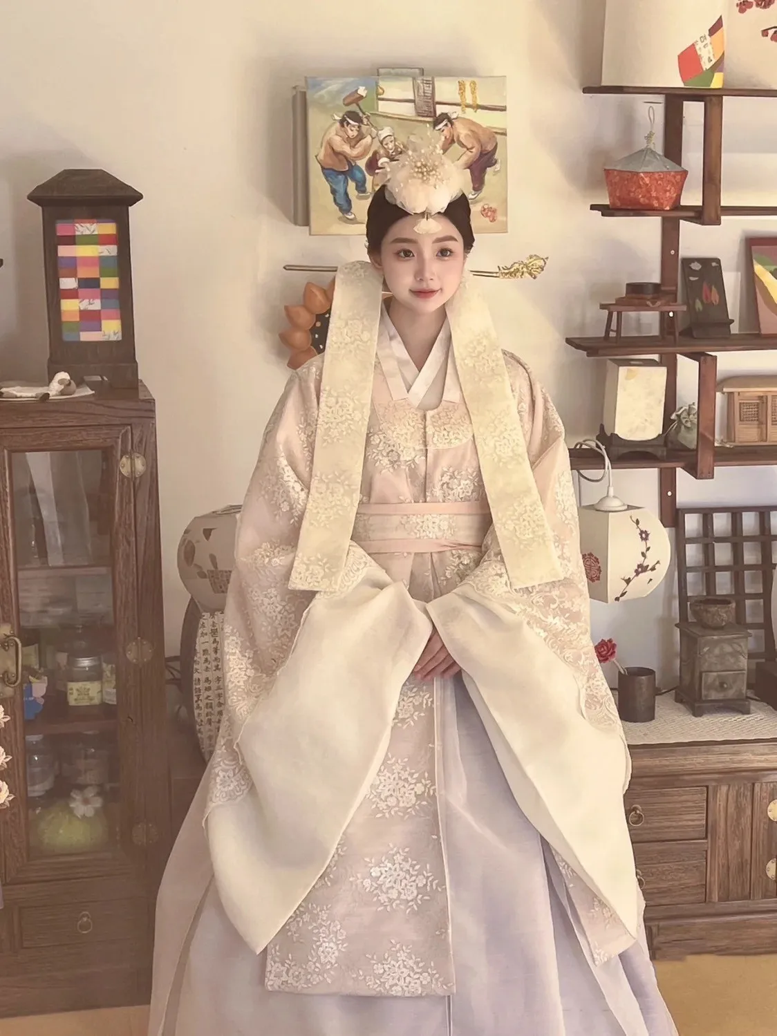 2025 فستان كوري أنيق لقصر الأميرة القديم فستان زفاف نسائي محسّن زي رقص كوري الهانبوك التقليدي w201