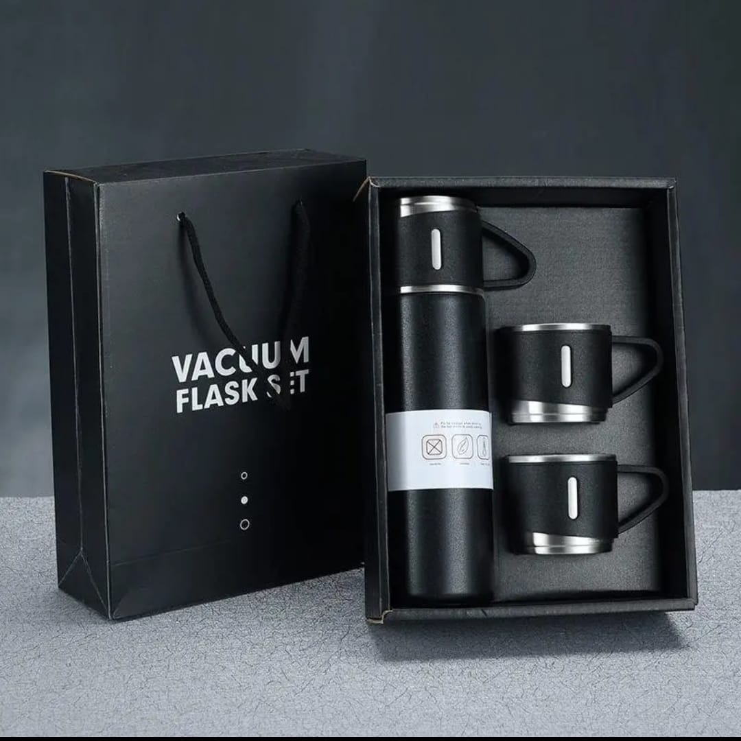 طقم (3) أكواب مع فلاسك حافظ للحرارة والبرودة مقاومة للصدأ A set of (3) cups with stainless steel flasks to keep hot and cold
