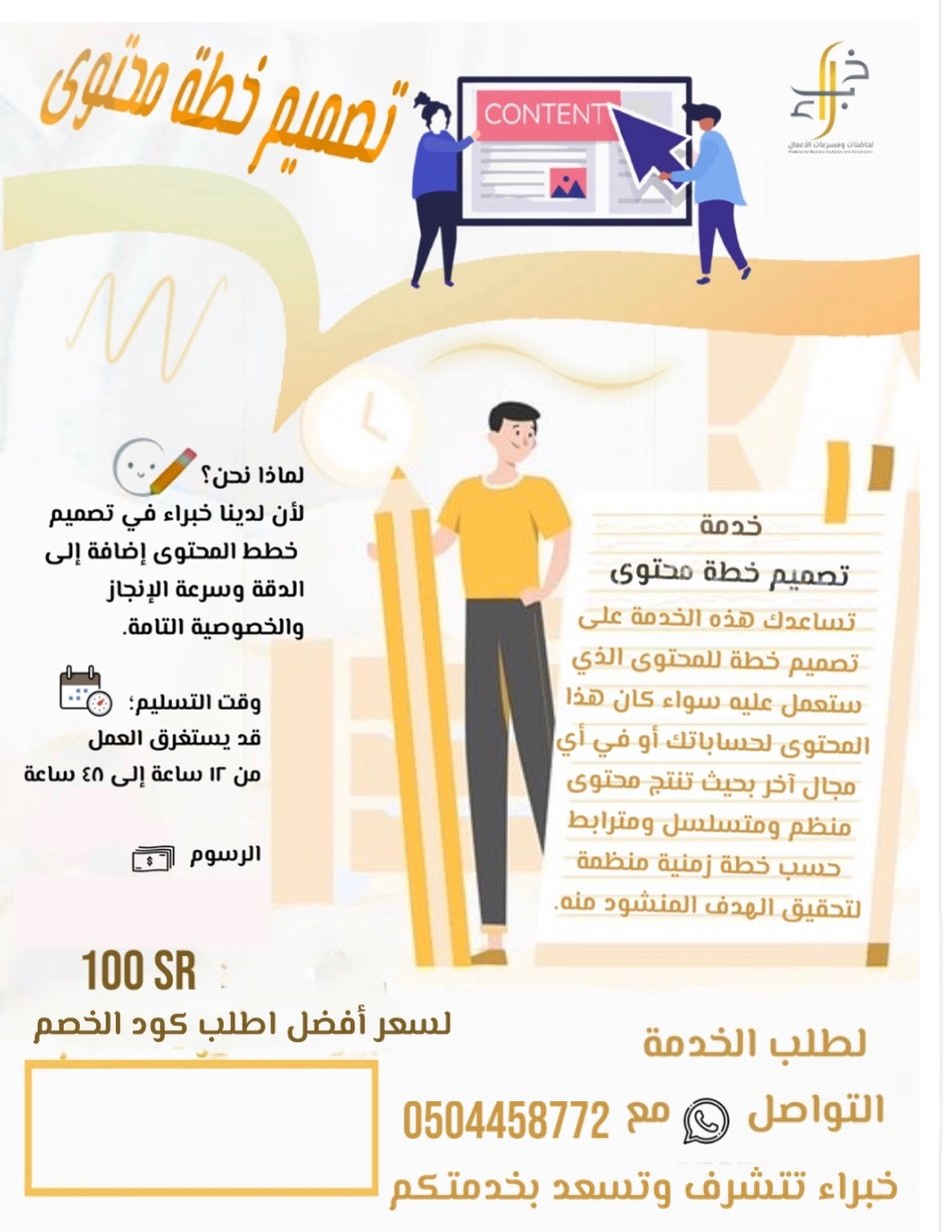 رسوم تصميم خطة محتوى 100 ريال