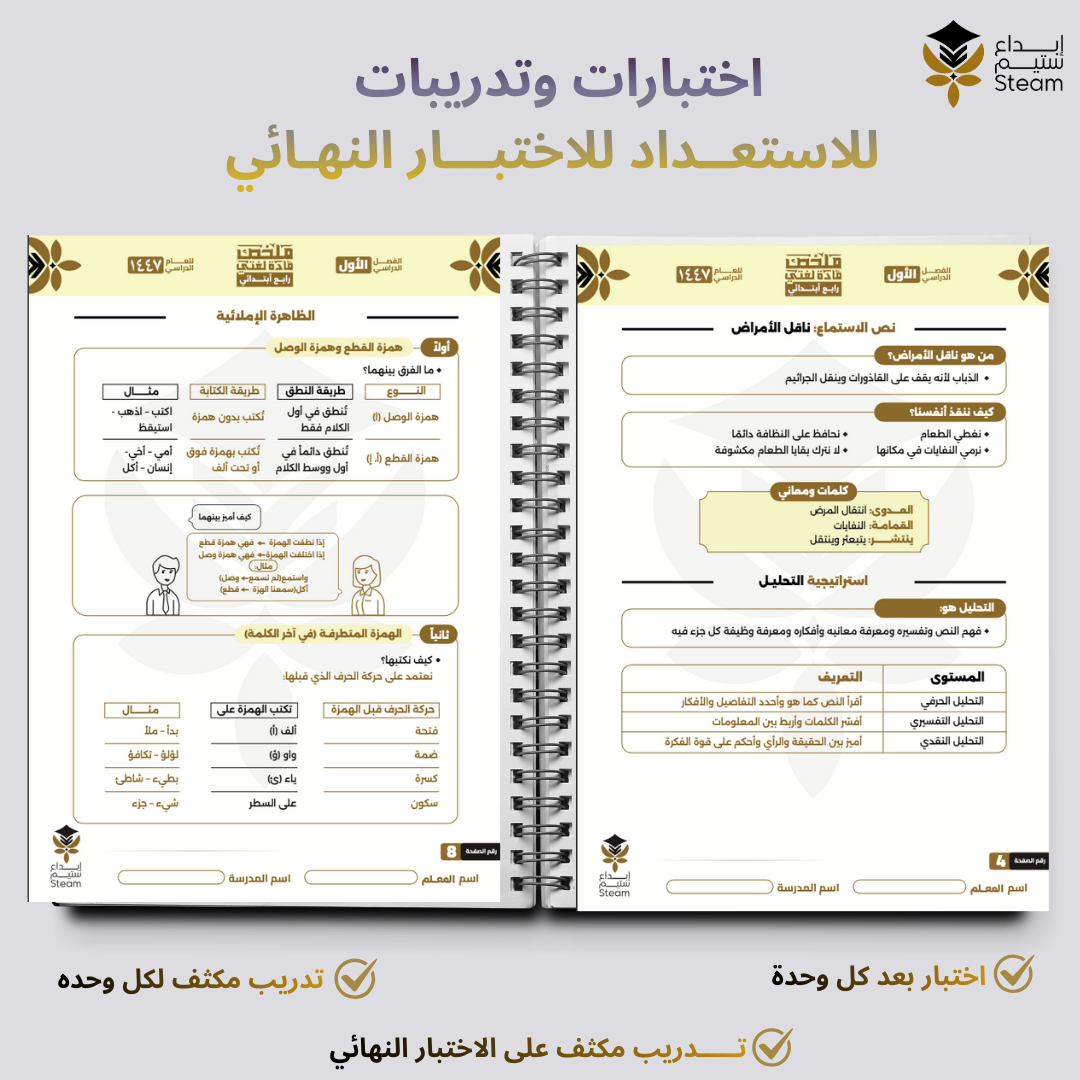 ملزمة الاختبارات المركزية لغتي رابع ابتدائي
