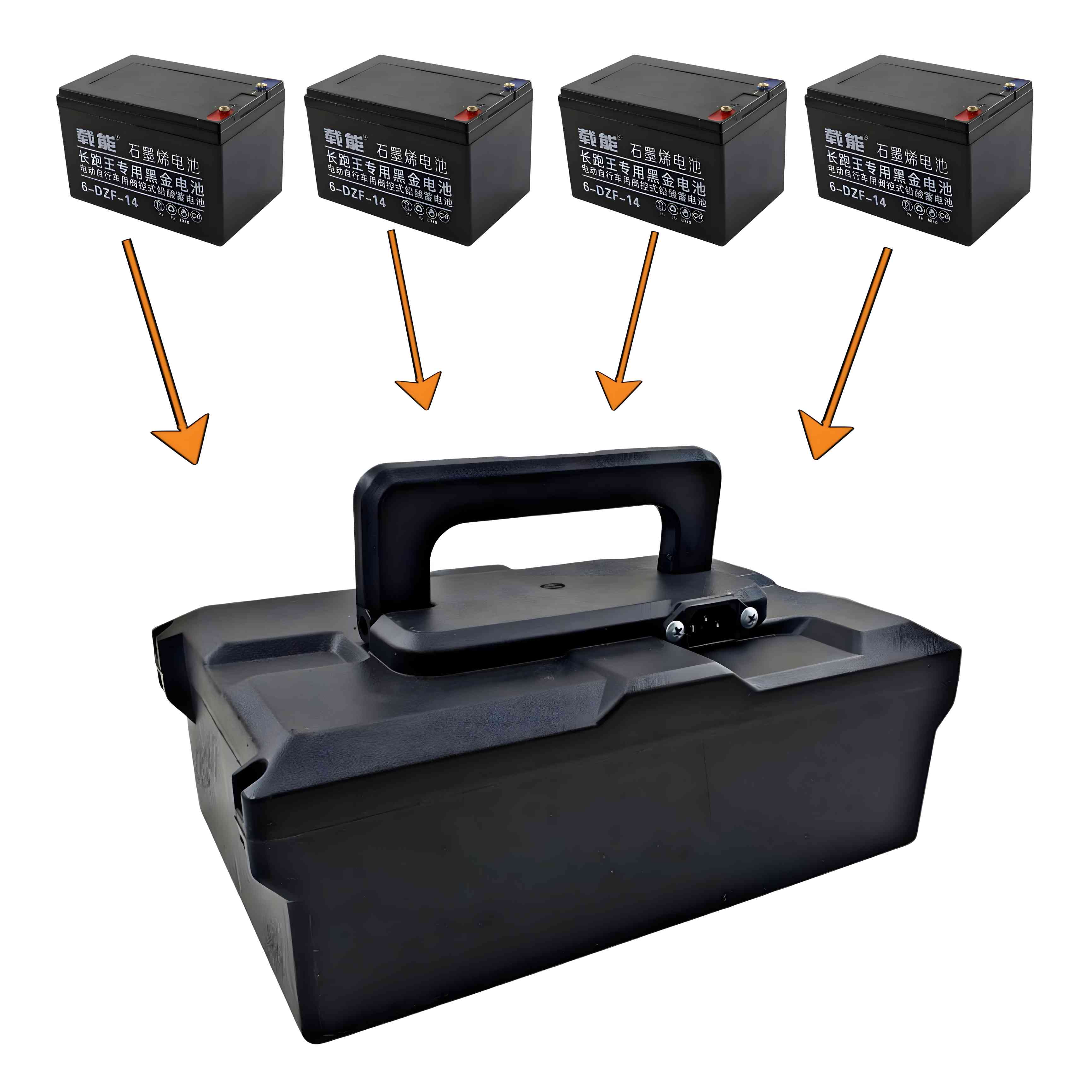بطارية الدراجة الكهربائية 48v أربع بطاريات 12v 12a : بطارية مصنوعة من مواد عالية الجودة وتدوم طويلاً تأتي بجهد 12v فولت وبسعة 12a أمبير ، تناسب مختلفة الدراجة الكهربائية والدبابات الكهربائية إلتي تأتي بنفس الجهد وقدرة 12v فولت