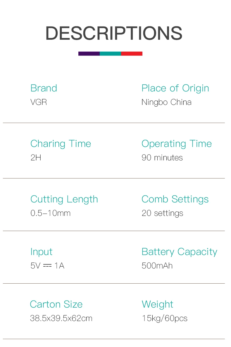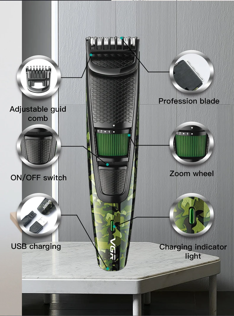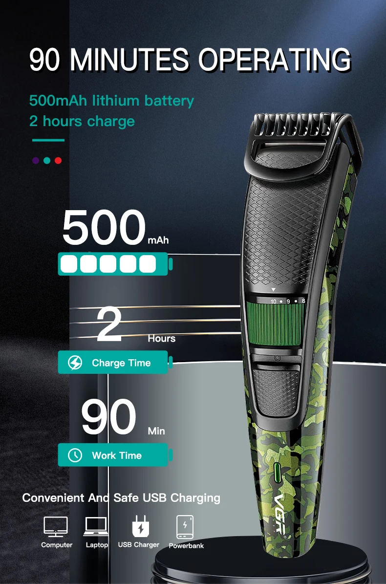 VGR 053 ماكينة حلاقة قابلة للتعديل للرجال ، قابلة لإعادة الشحن ، كهربائية ، لاسلكية ، ماكينة قص احترافية