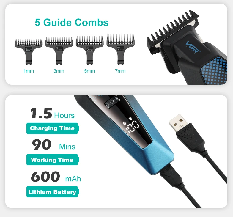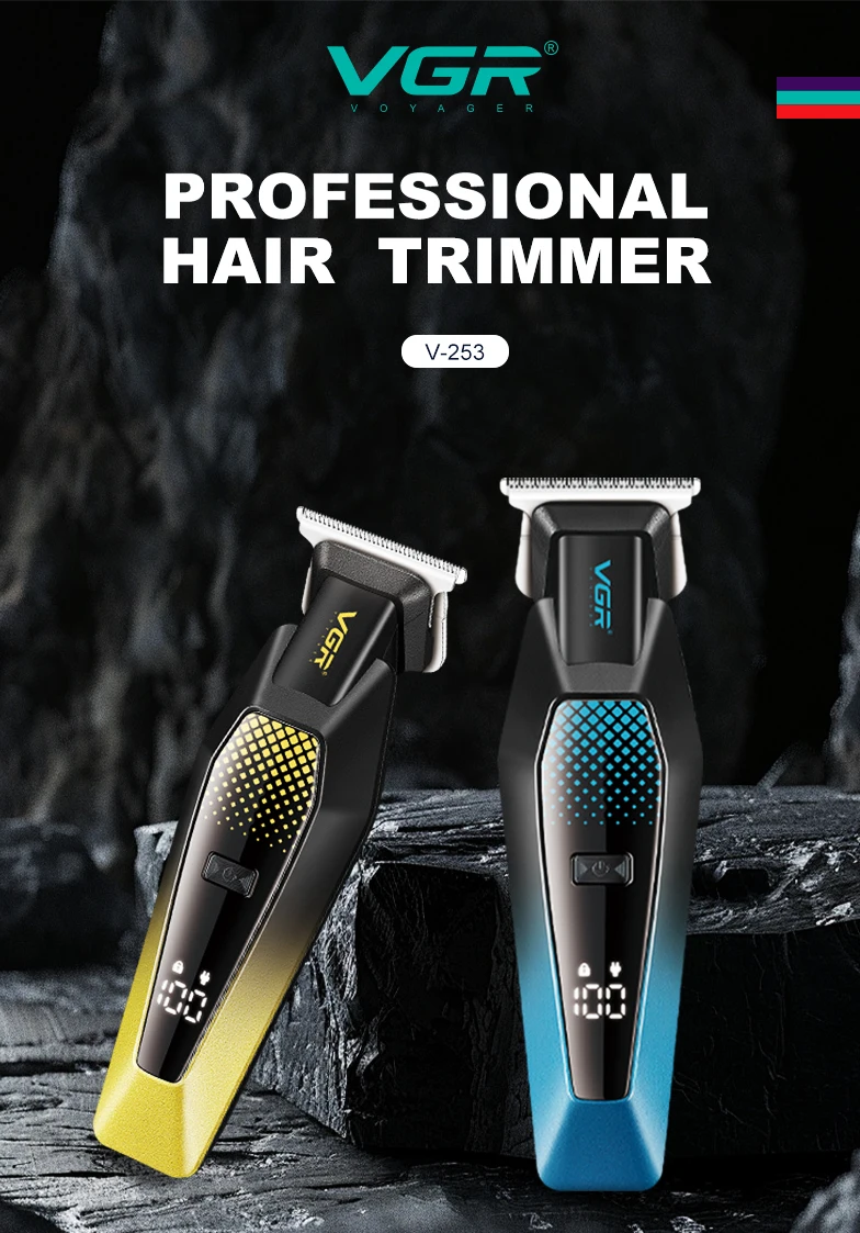 - VGR V-253 مقص كهربائي مريح 6000 دورة في الدقيقة متدرج اللون الجسم مقص الشعر للرجال المنزل LED ماكينة تشذيب الشعر الرقمية الذكية