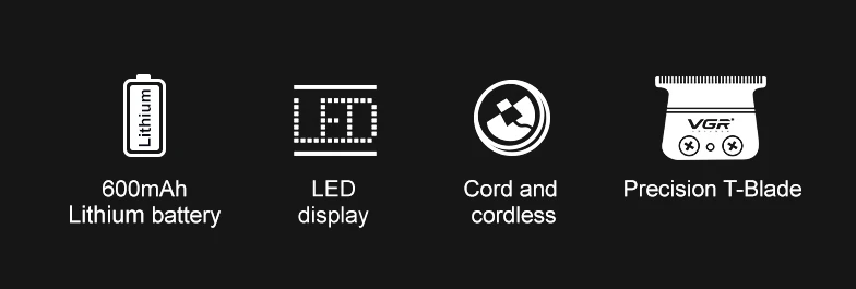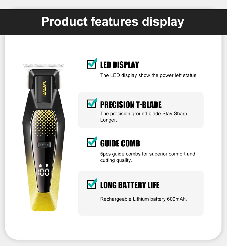 VGR V-253 مقص كهربائي مريح 6000 دورة في الدقيقة متدرج اللون الجسم مقص الشعر للرجال المنزل LED ماكينة تشذيب الشعر الرقمية الذكية