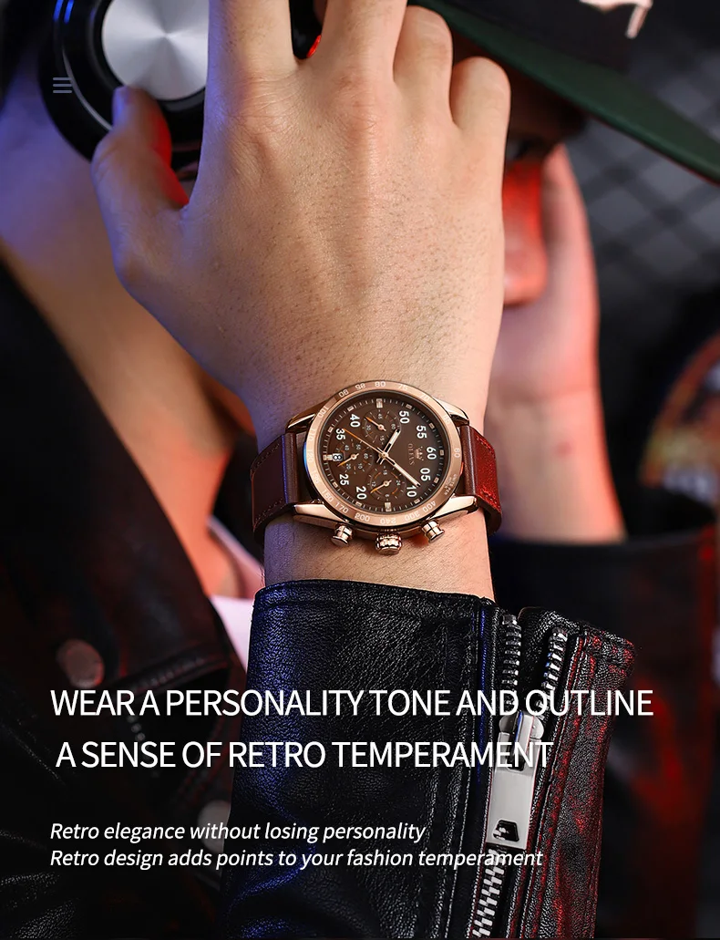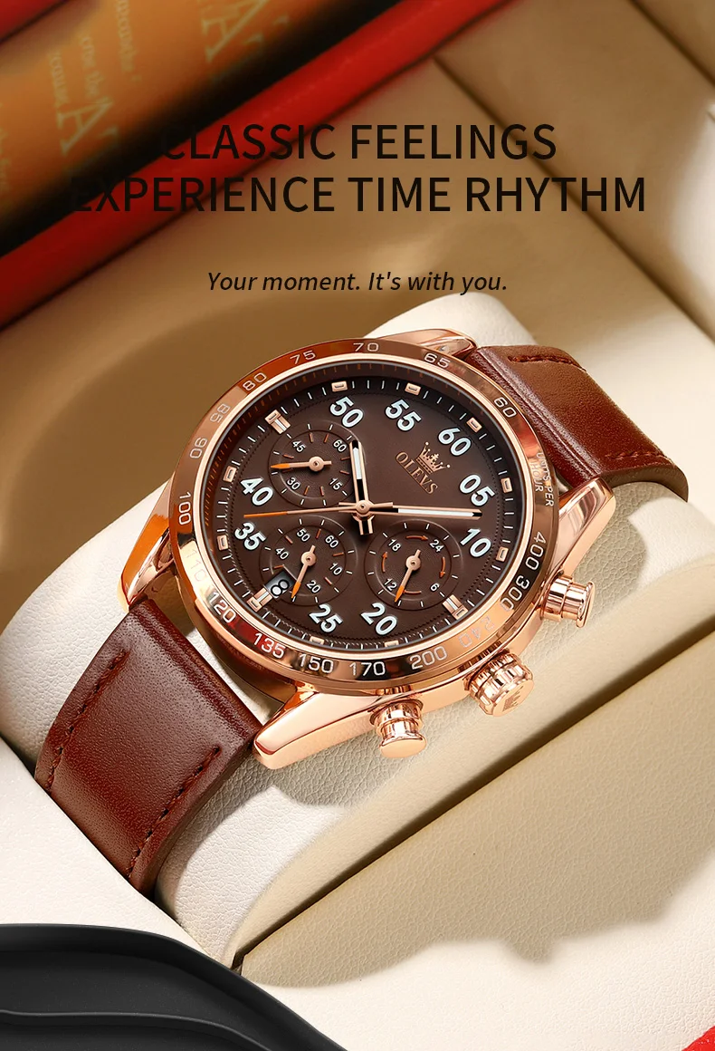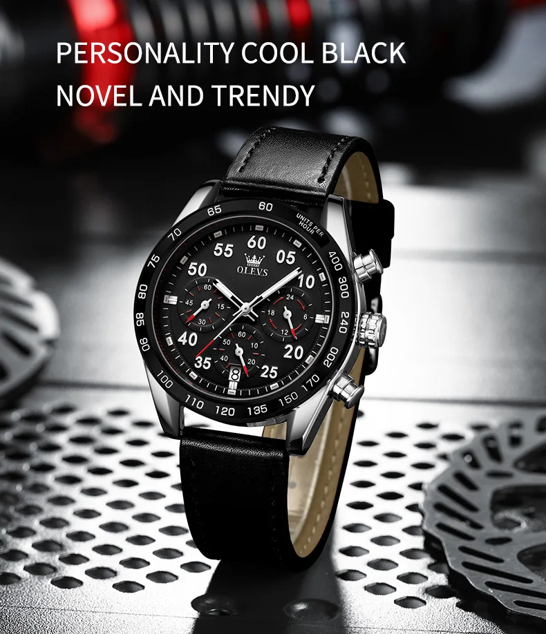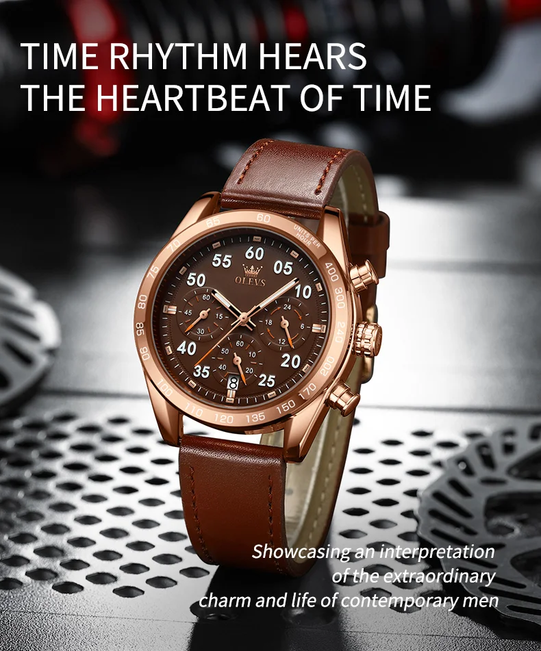 OLEVS TY703 العلامة التجارية الحصرية ساعة كوارتز رجالية حزام جلدي أنيق كلاسيكي كرونوغراف التقويم مقاوم للماء ساعة رجالية مضيئة
