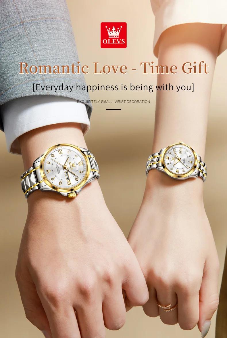 OLEVS ساعة كوارتز أصلية للزوجين بمقياس روماني ومينا ماسية ساعة فاخرة للرجال والنساء بحزام المعين وساعة يد مقاومة للماء
