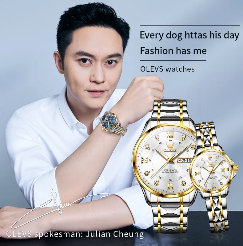 - OLEVS ساعة كوارتز أصلية للزوجين بمقياس روماني ومينا ماسية ساعة فاخرة للرجال والنساء بحزام المعين وساعة يد مقاومة للماء