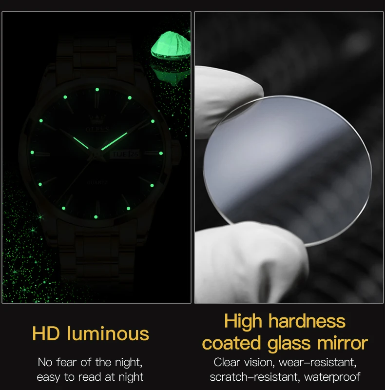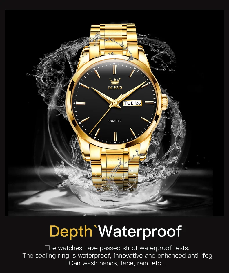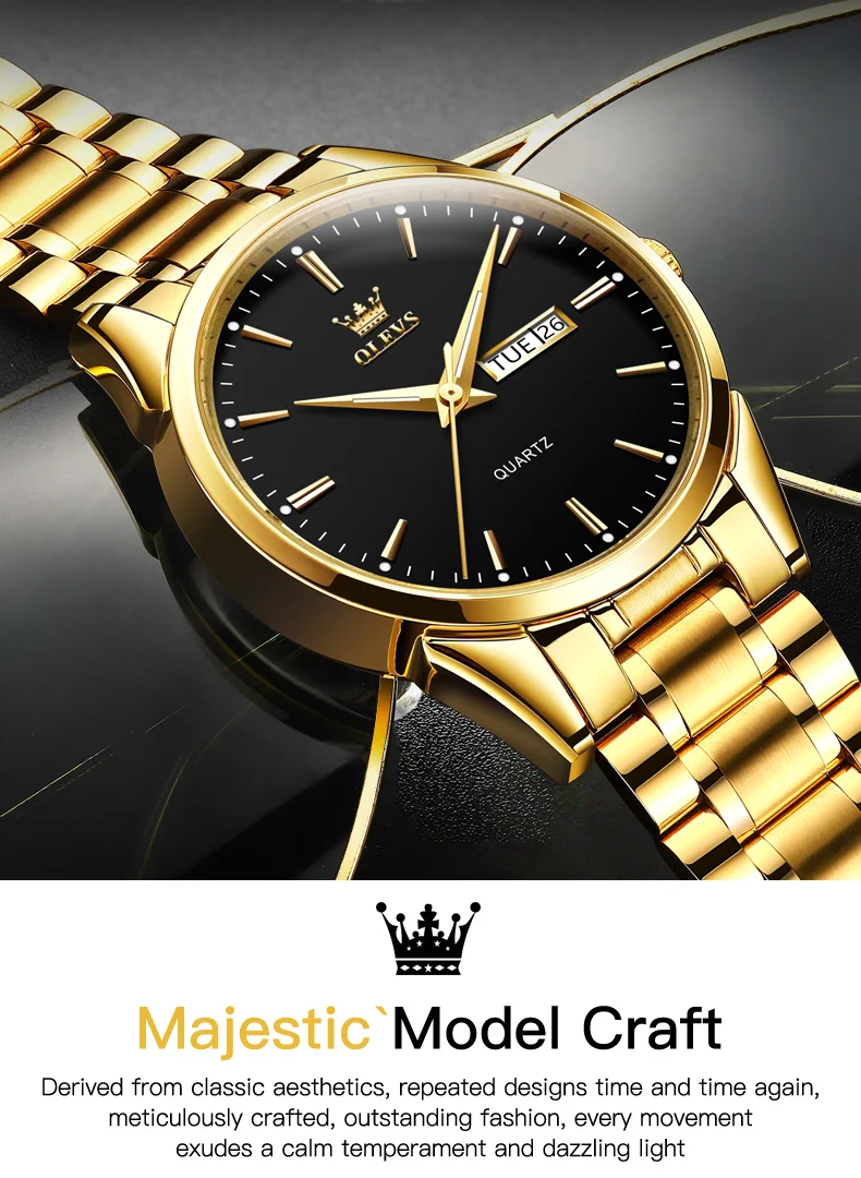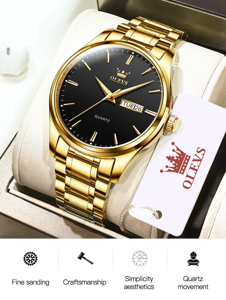 - OLEVS-كلاسيك الذهب ساعات المعصم للرجال ، العلامة التجارية الأعلى ، الفاخرة ، الأعمال ، مقاوم للماء ، مضيئة ، الفولاذ المقاوم للصدأ ، ساعة اليد الكوارتز