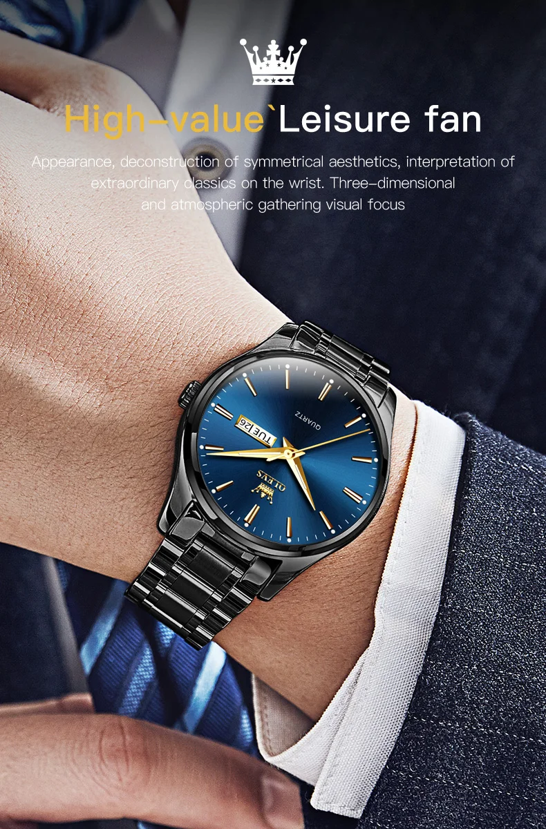 OLEVS-كلاسيك الذهب ساعات المعصم للرجال ، العلامة التجارية الأعلى ، الفاخرة ، الأعمال ، مقاوم للماء ، مضيئة ، الفولاذ المقاوم للصدأ ، ساعة اليد الكوارتز