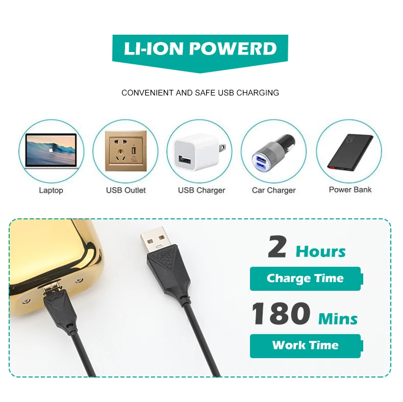 ★ شحن USB سريع: توفر ماكينة حلاقة الشعر هذه شحنًا مريحًا وسريعًا من خلال منفذ USB الخاص بها، مما يسمح لك بإعادة شحنها بسرعة وخالية من المتاعب.