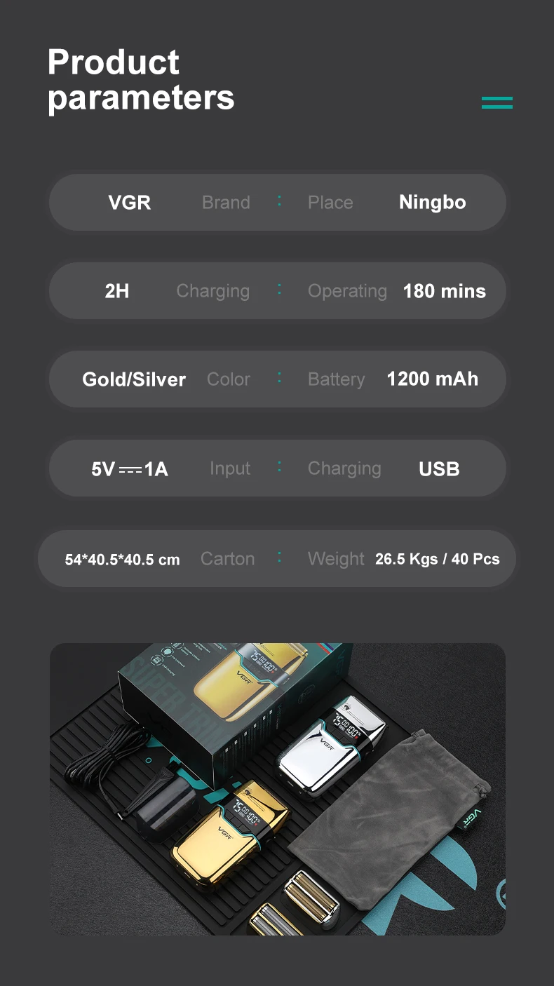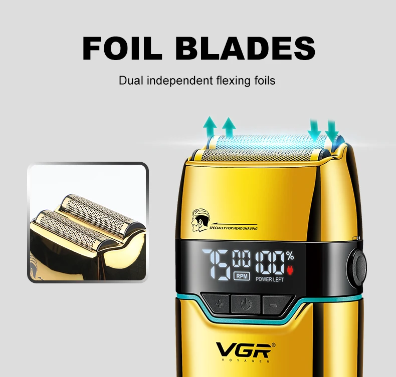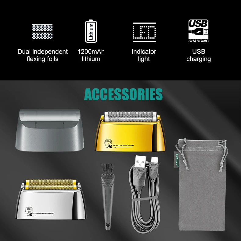 VGR ماكينة حلاقة كهربائية احترافية للوجه ماكينة حلاقة أصلع أداة تهذيب اللحية قابلة للشحن ماكينة حلاقة للشعر للرجال V-350