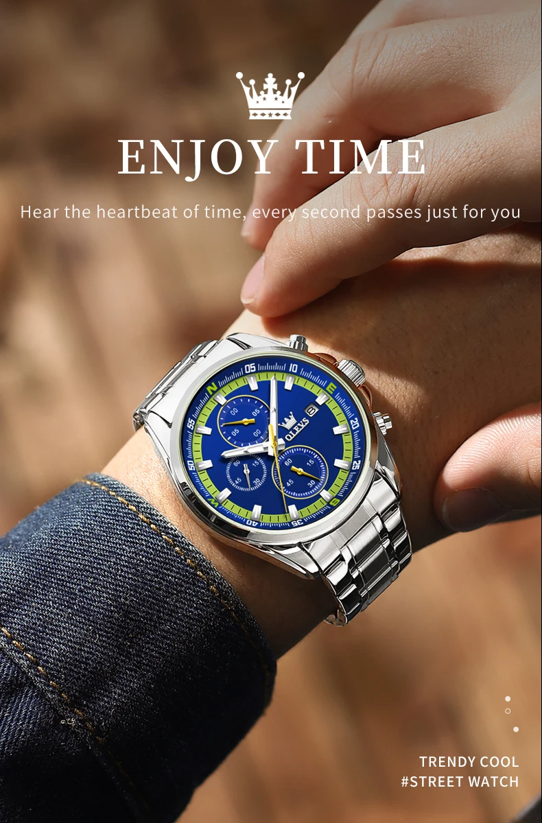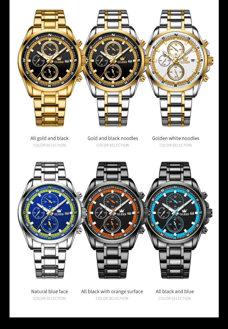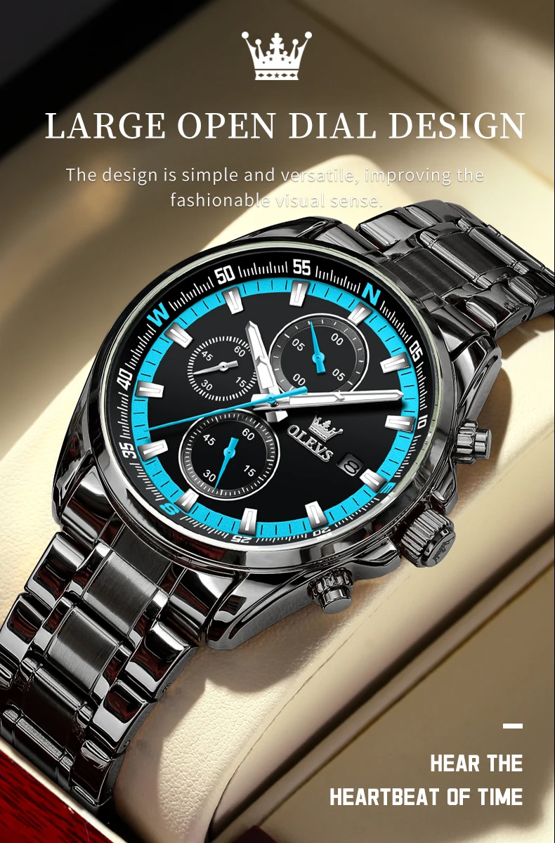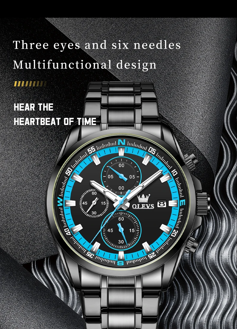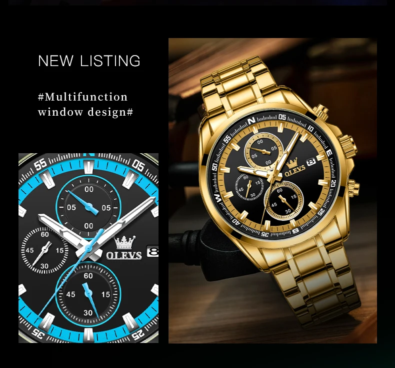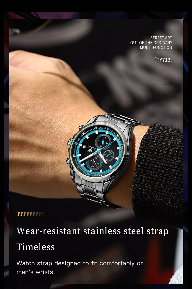 - OLEVS TY713 ساعات رجالية حصرية من أفضل العلامات التجارية المصنوعة من الفولاذ المقاوم للصدأ كلاسيكية بثلاثة أقراص صغيرة مقاومة للماء ساعة رجالية أصلية