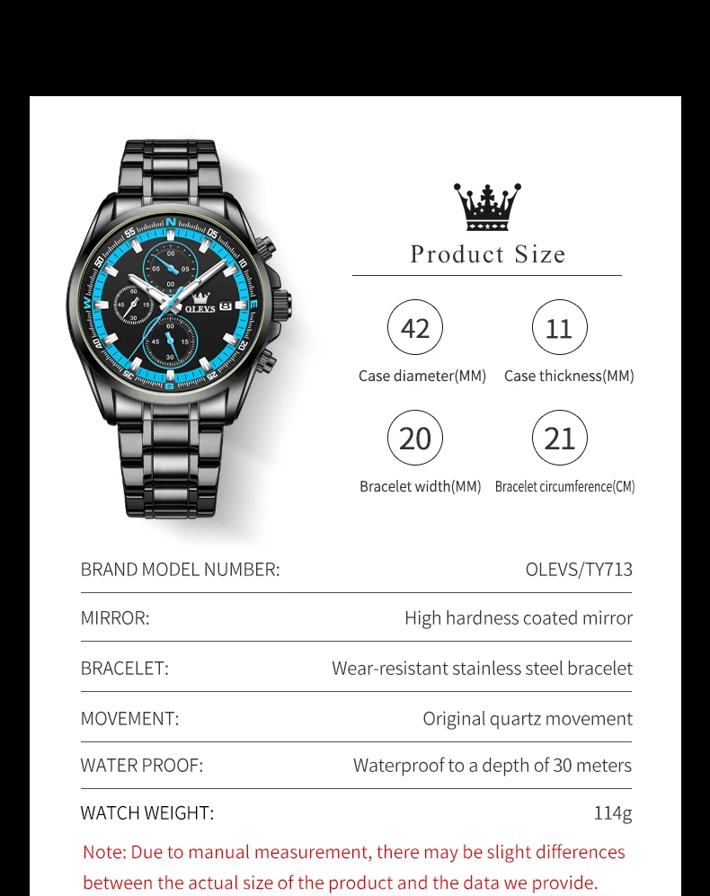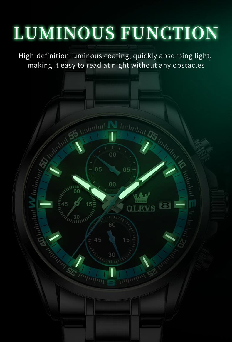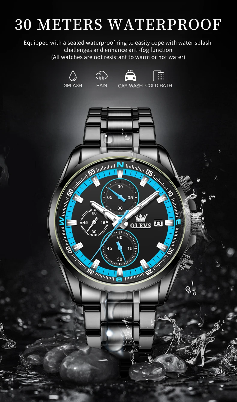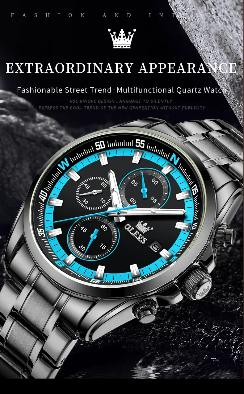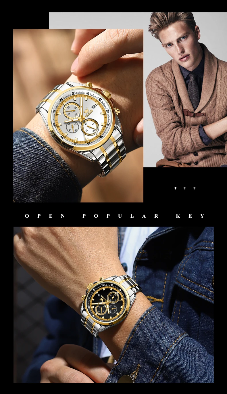 - OLEVS TY713 ساعات رجالية حصرية من أفضل العلامات التجارية المصنوعة من الفولاذ المقاوم للصدأ كلاسيكية بثلاثة أقراص صغيرة مقاومة للماء ساعة رجالية أصلية