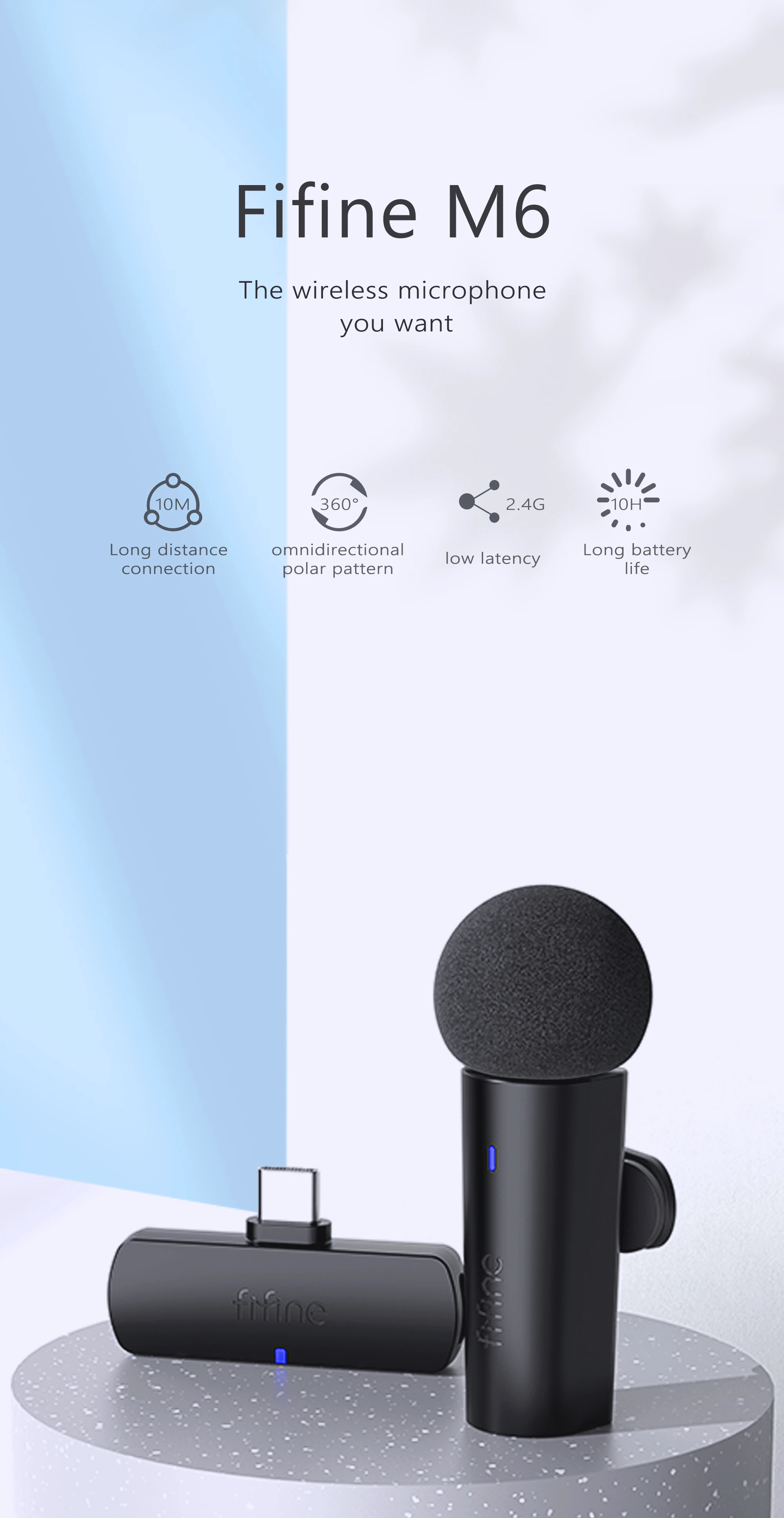 ميكروفون lafalier لاسلكي FIFINE ، مكثف Type-C ، ميكروفون صغير للهاتف ، تابلت ، فيديو ، مقابلة ، سجل فيديو ، يوتيوب ، تسجيل ، M6