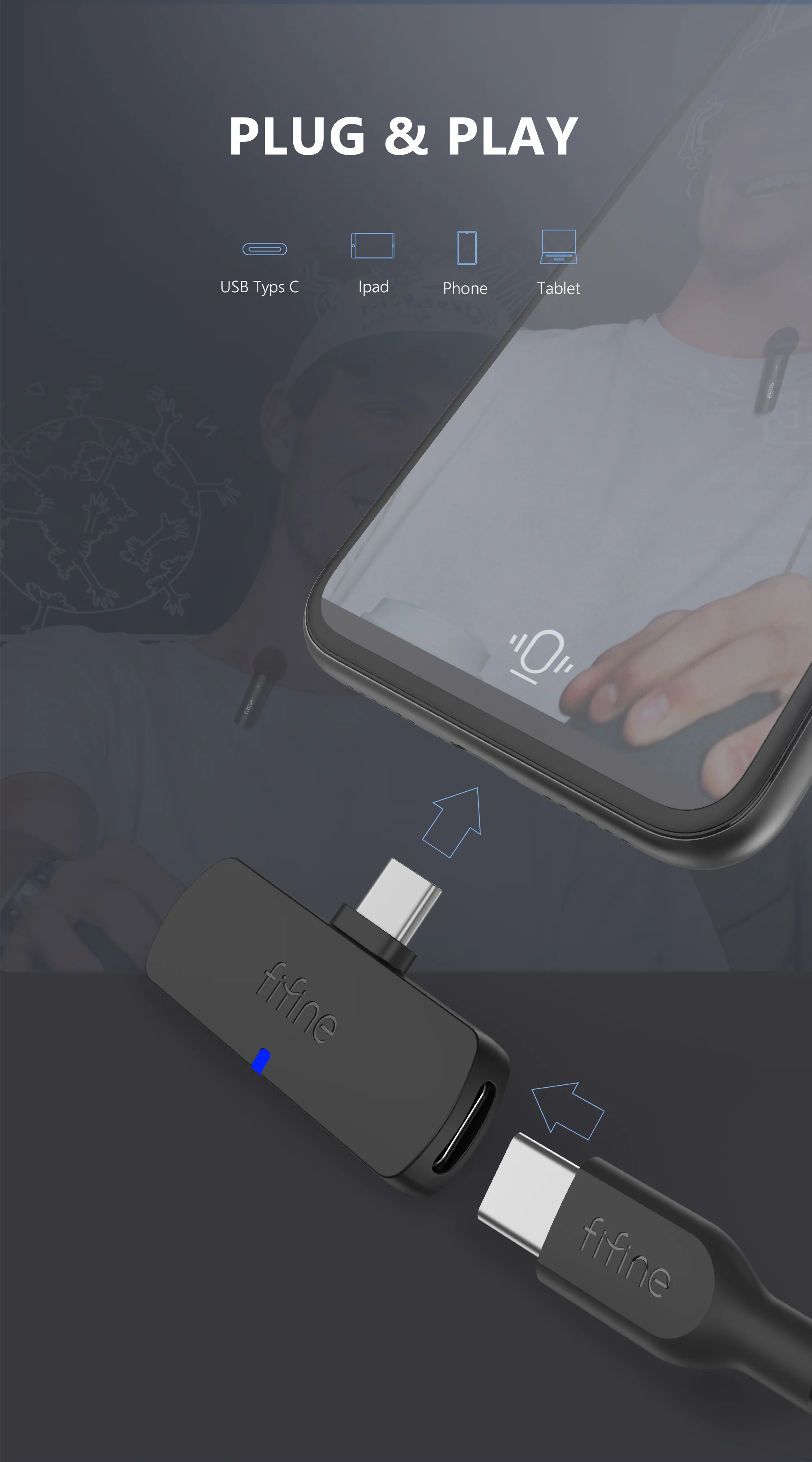 - ميكروفون lafalier لاسلكي FIFINE ، مكثف Type-C ، ميكروفون صغير للهاتف ، تابلت ، فيديو ، مقابلة ، سجل فيديو ، يوتيوب ، تسجيل ، M6