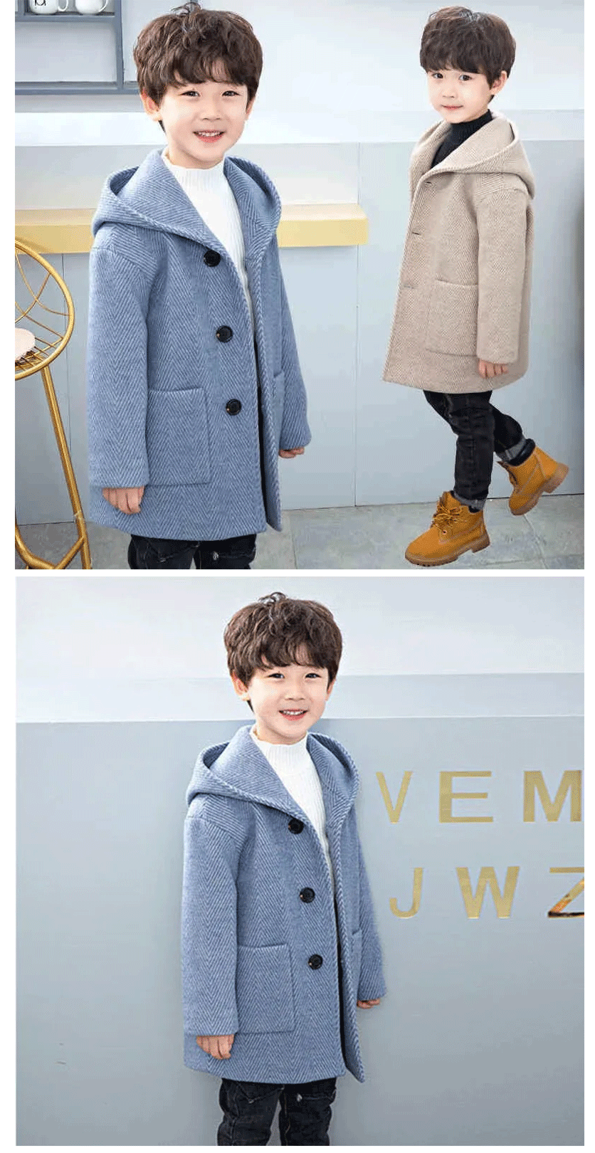 جاكيت صوف شتوي للأولاد إصدار كوري جديد أنيق سميك وسيم متوسط الطول يحافظ على الدفء ملابس أطفال كاجوال