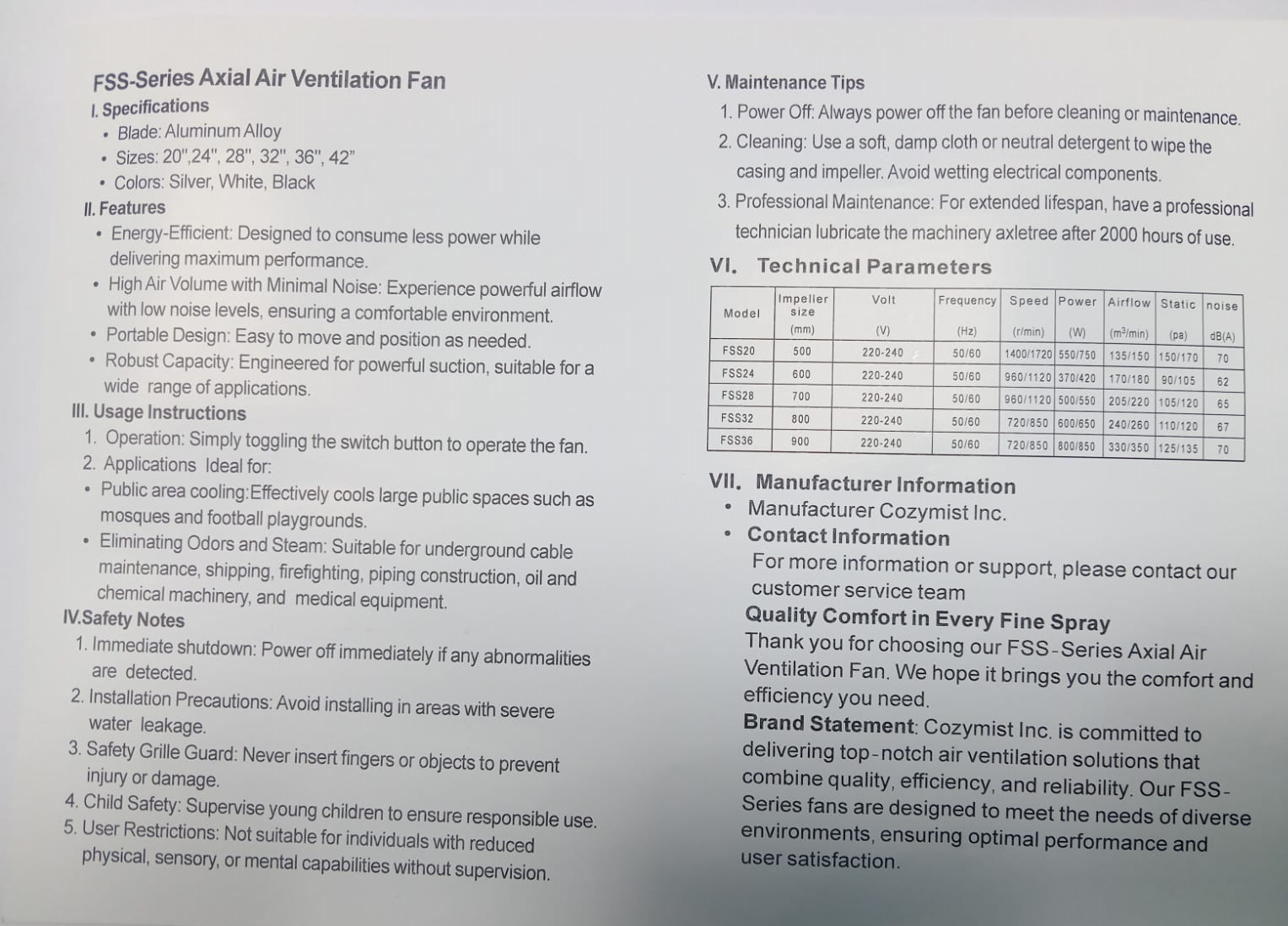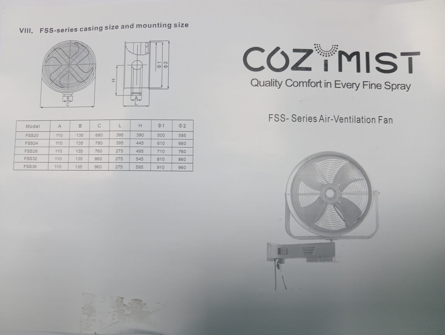 مروحة ضباب عالية الجودة 24 انش تيواني COZYMIST