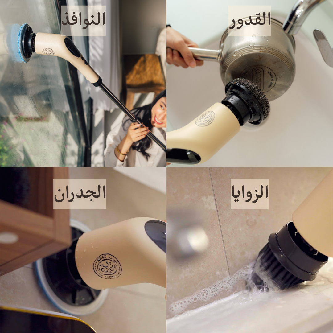 فرشاة نيت الكهربائية صُممت عشان تعطيك تنظيف عميق ونتيجة واضحة، بدون فرك، بدون انحناء، وبدون تعب.