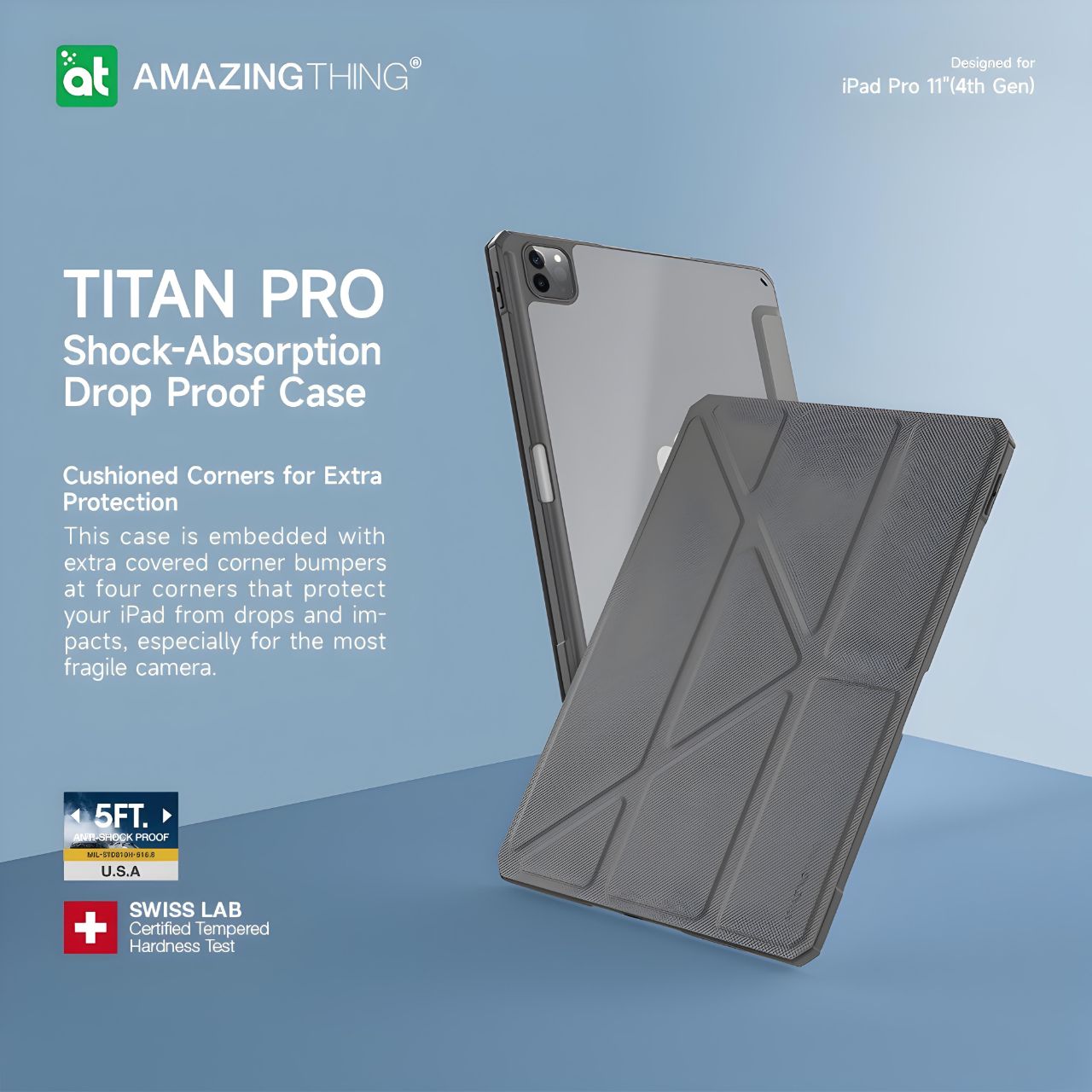 AMAZINGthing | تيتان برو كفر iPad Pro 11 إنش 2022/2019 - رمادي