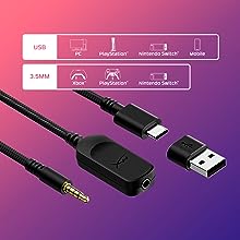 أجهزة سويتش وأجهزة ماك والأجهزة المحمولة. يتم تضمين موصلات 3.5 ملم ويو اس بي ايه ويو اس بي سي