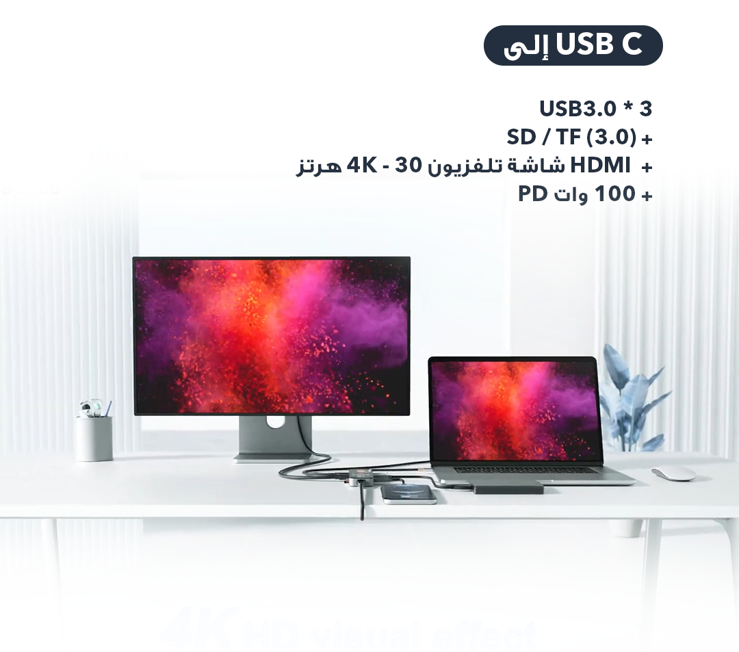 - وي وو 7 في 1 موزع USB-C شفاف