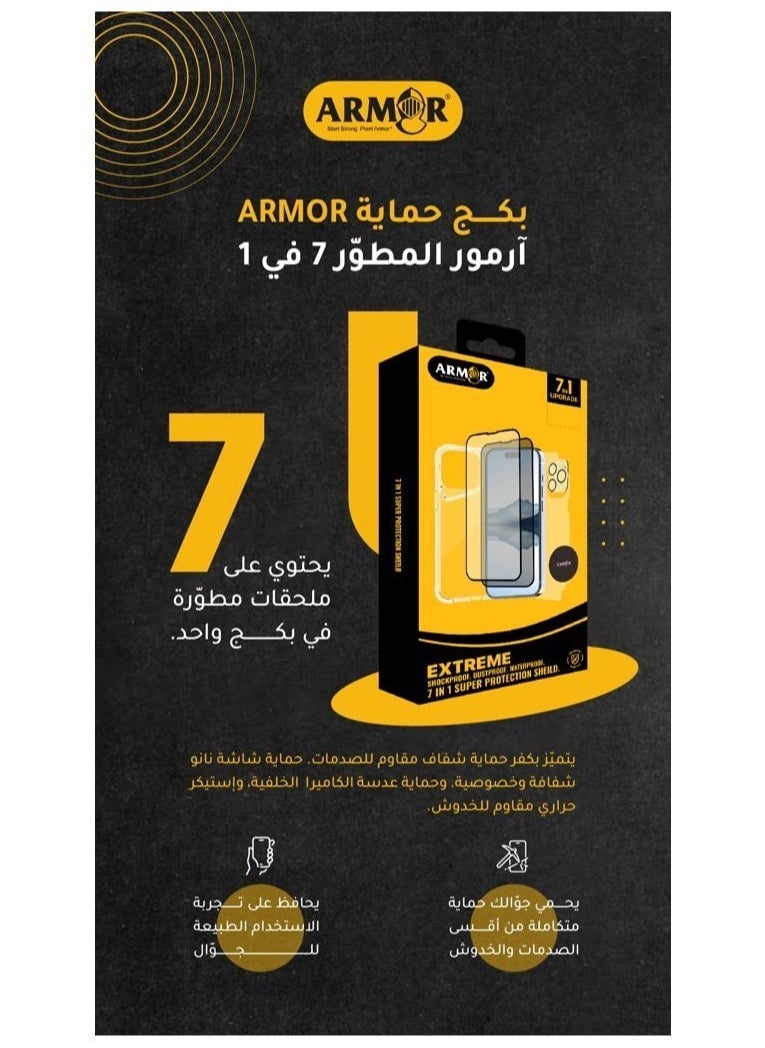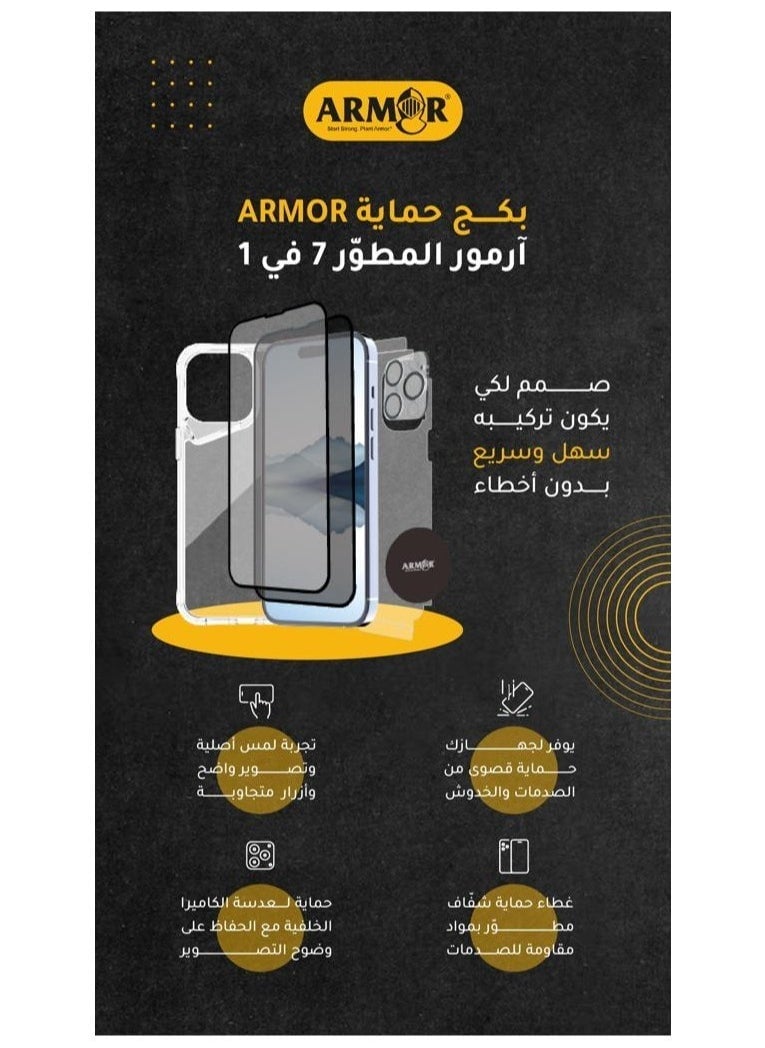 يتميّز بكفر حماية شفاف مقاوم للصدمات. حماية شاشة نانو شفافة وخصوصية. وحماية عدسة الكاميرا الخلفية، وإستيكر حراري مقاوم للخدوش.