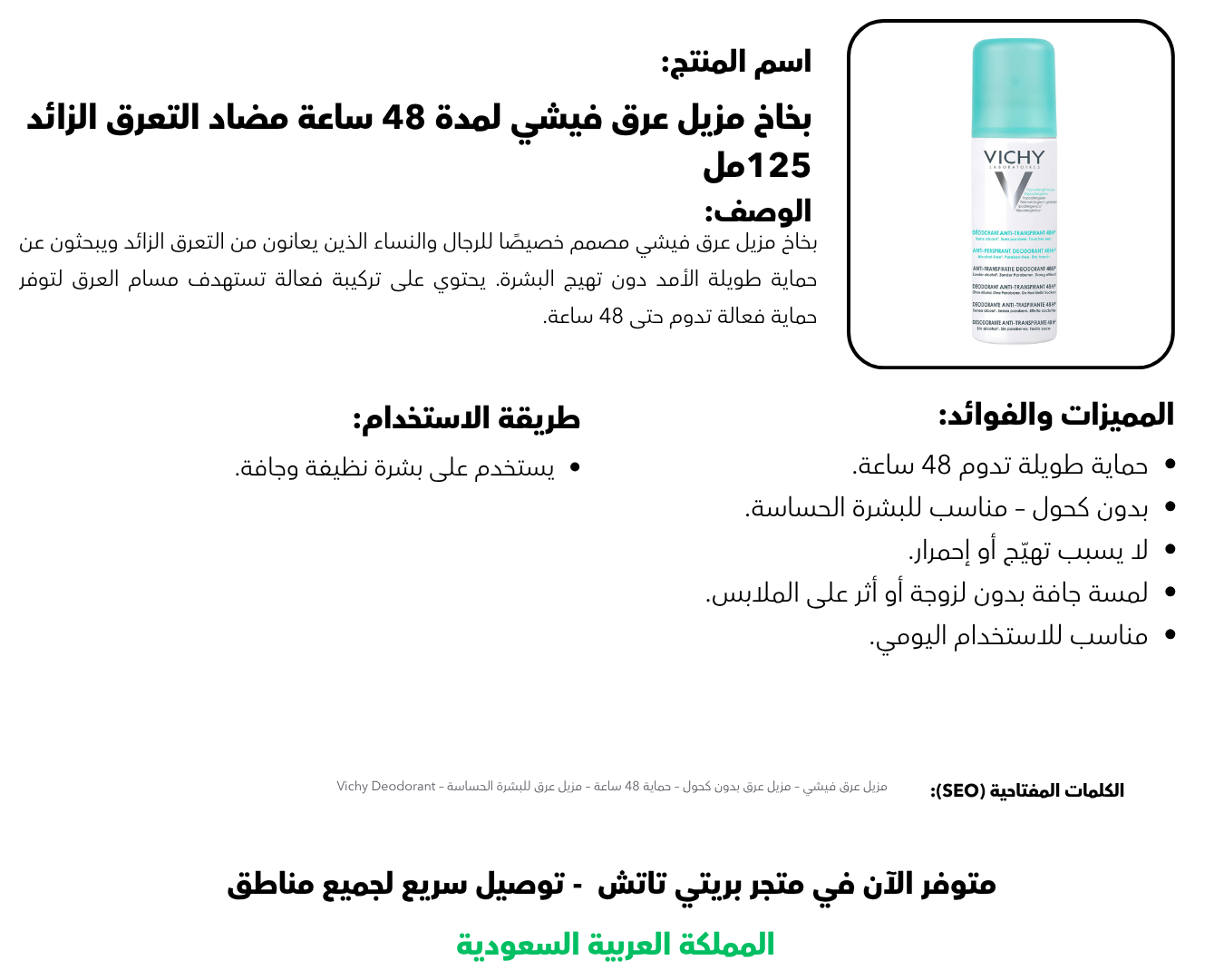 فيشي (VICHY ) بخاخ مزيل عرق لمدة 48 ساعة مضاد التعرق الزائد 125مل