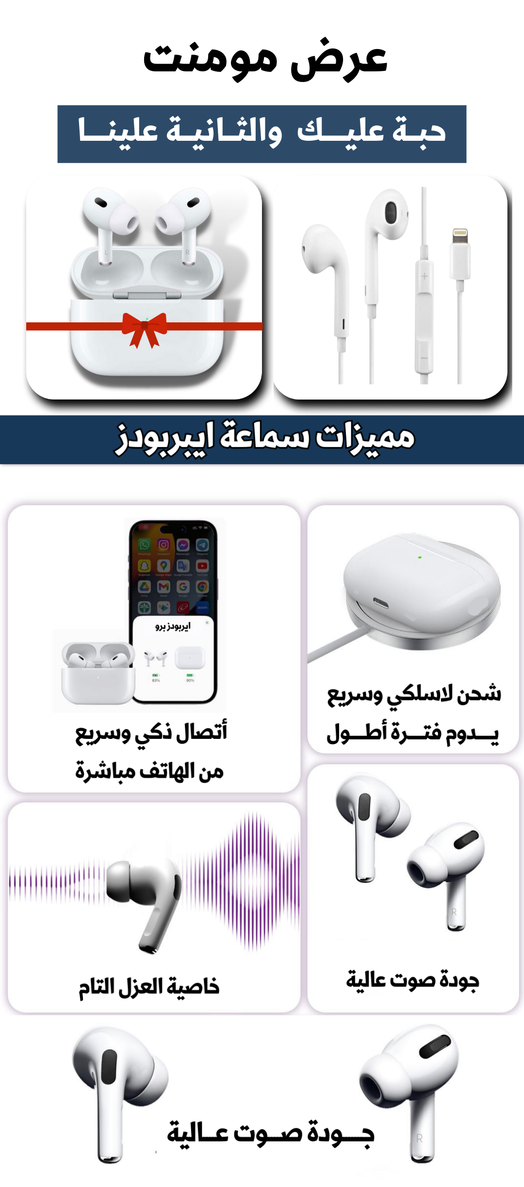 - سماعة سلكية + سماعة ايربودز برو هدية