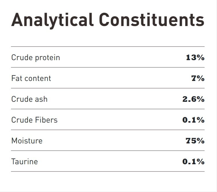- 85% مكونات حيوانية (باستثناء الماء) تمنح قطتك بروتينًا غنيًا وطعمًا واضحًا تحبه.