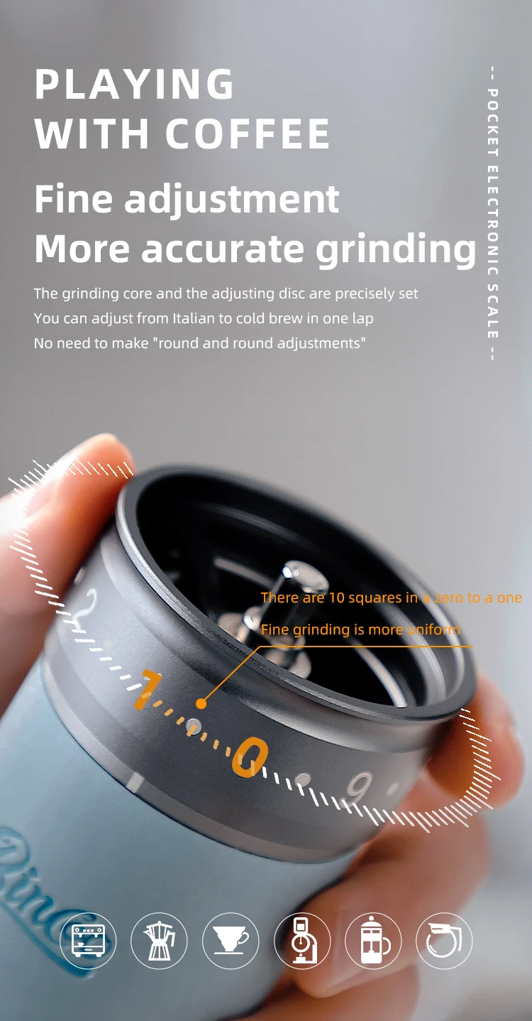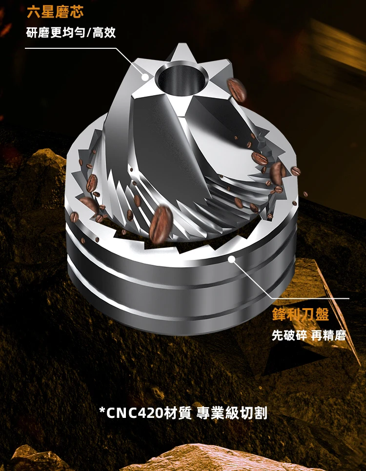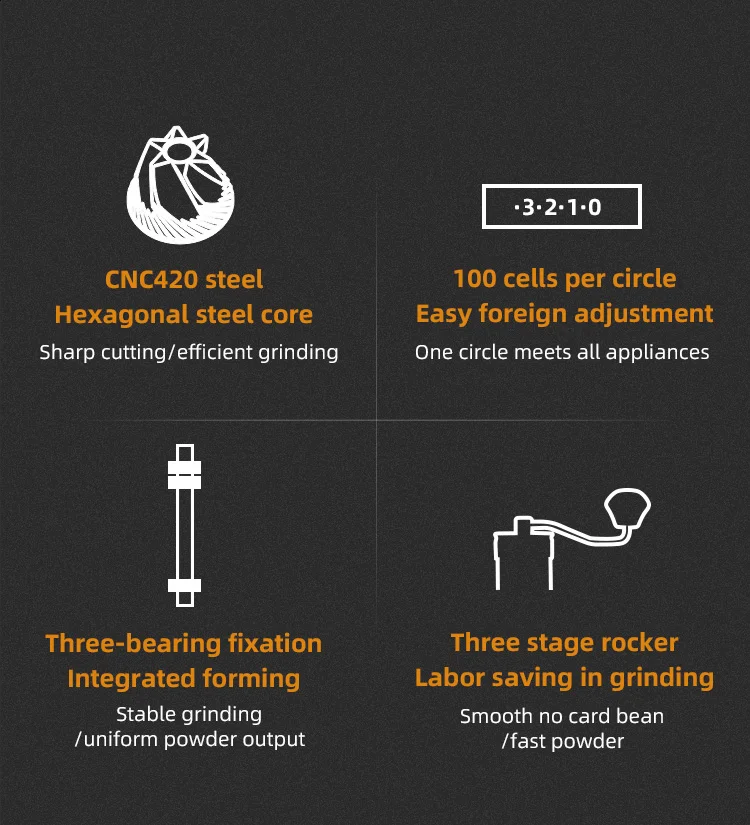 مطحنة قهوة يدوية احترافية بتروس فولاذية سداسية قابلة للتعديل