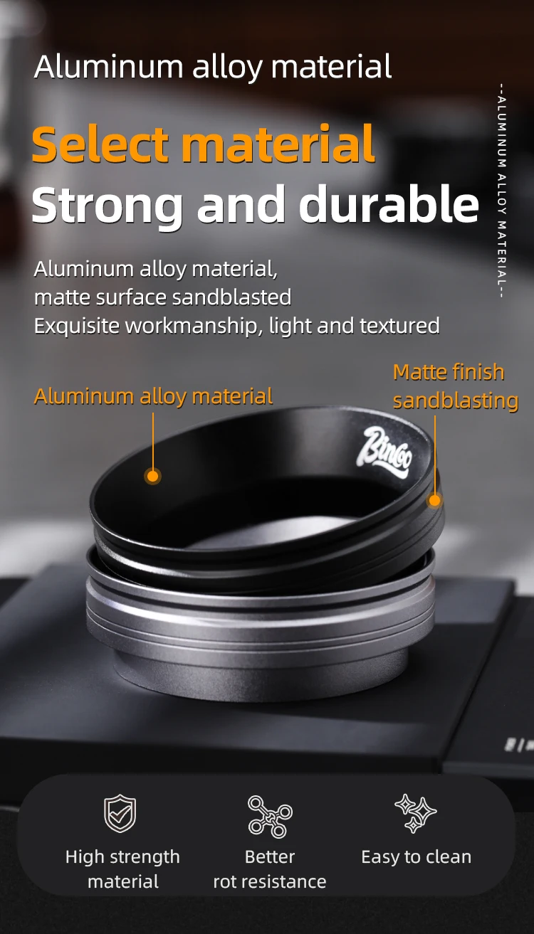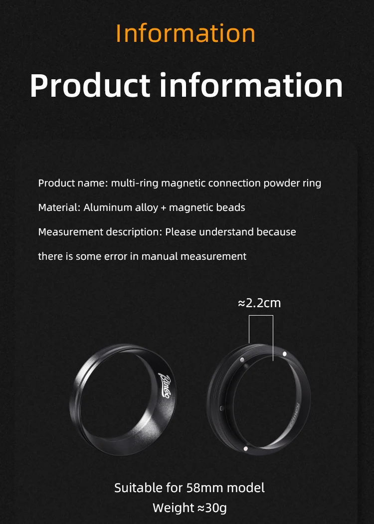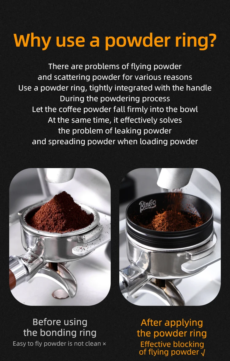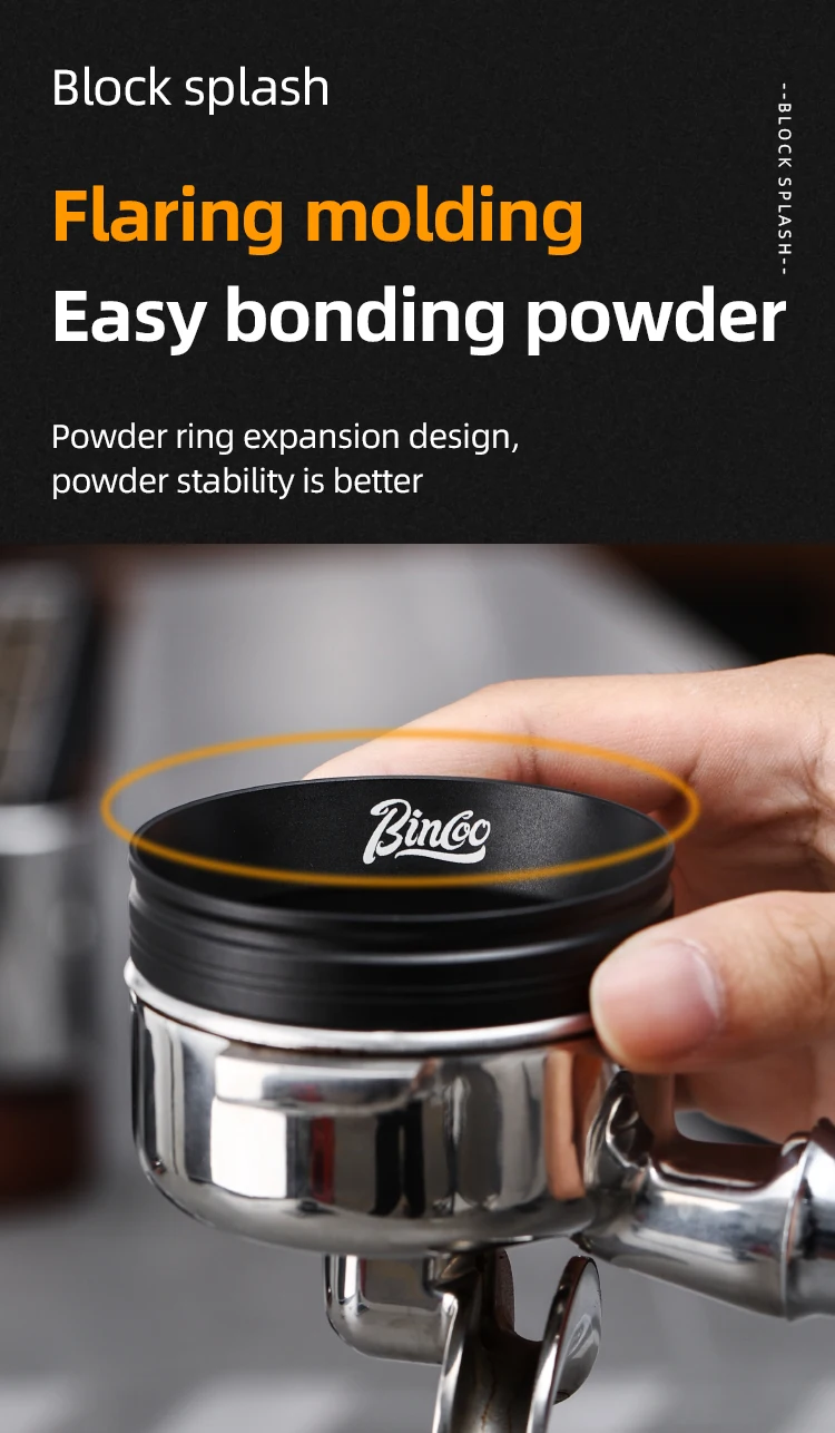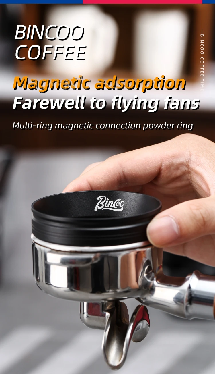 حلقة توزيع القهوة من BINCOO مقاس 51 مم و58 مم، تصميم مغناطيسي مضاد للكهرباء الساكنة لتثبيت قوي وانعدام تسرب القهوة أثناء التحضير