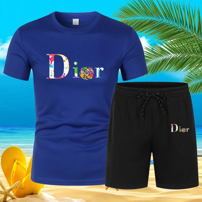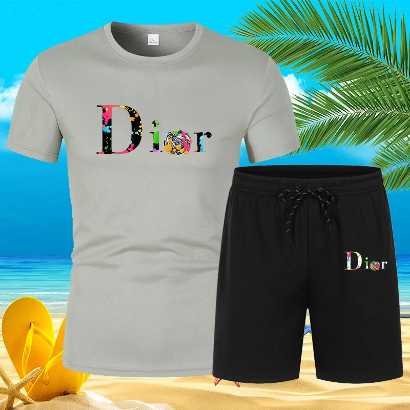 بدلة تيشيرت بأكمام قصيرة للرجال ، ملابس رياضية للركض ، طقم شاطئ ، مطبوع ، موضة غير رسمية ، صيف ، جديد ، ساخن ، أو