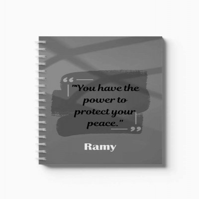 - دفتر سلك حلزوني ٦٠ ورقة مقاس A5، لتسجيل الملاحظات وتدوين التذكيرات، بغلاف من الورق المقوى بتصميم اسم رامي بالإنجليزية