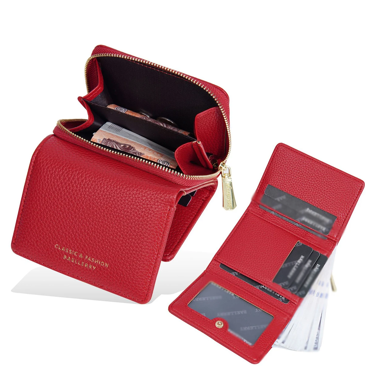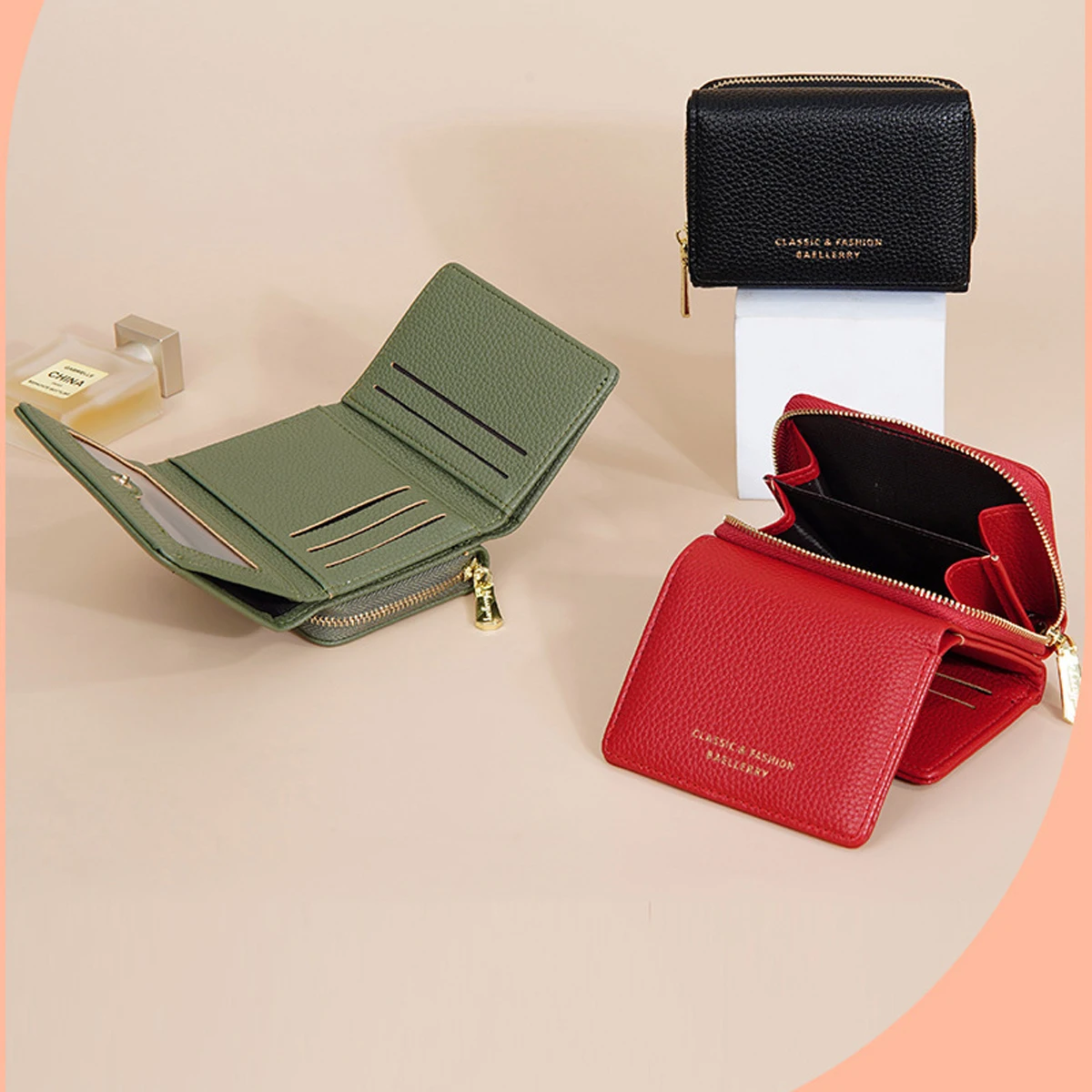 أزياء المرأة محفظة قصيرة مشبك بسيط بو المحفظة ثلاثة أضعاف متعددة بطاقة عملة المحفظة سستة حامل البطاقة
