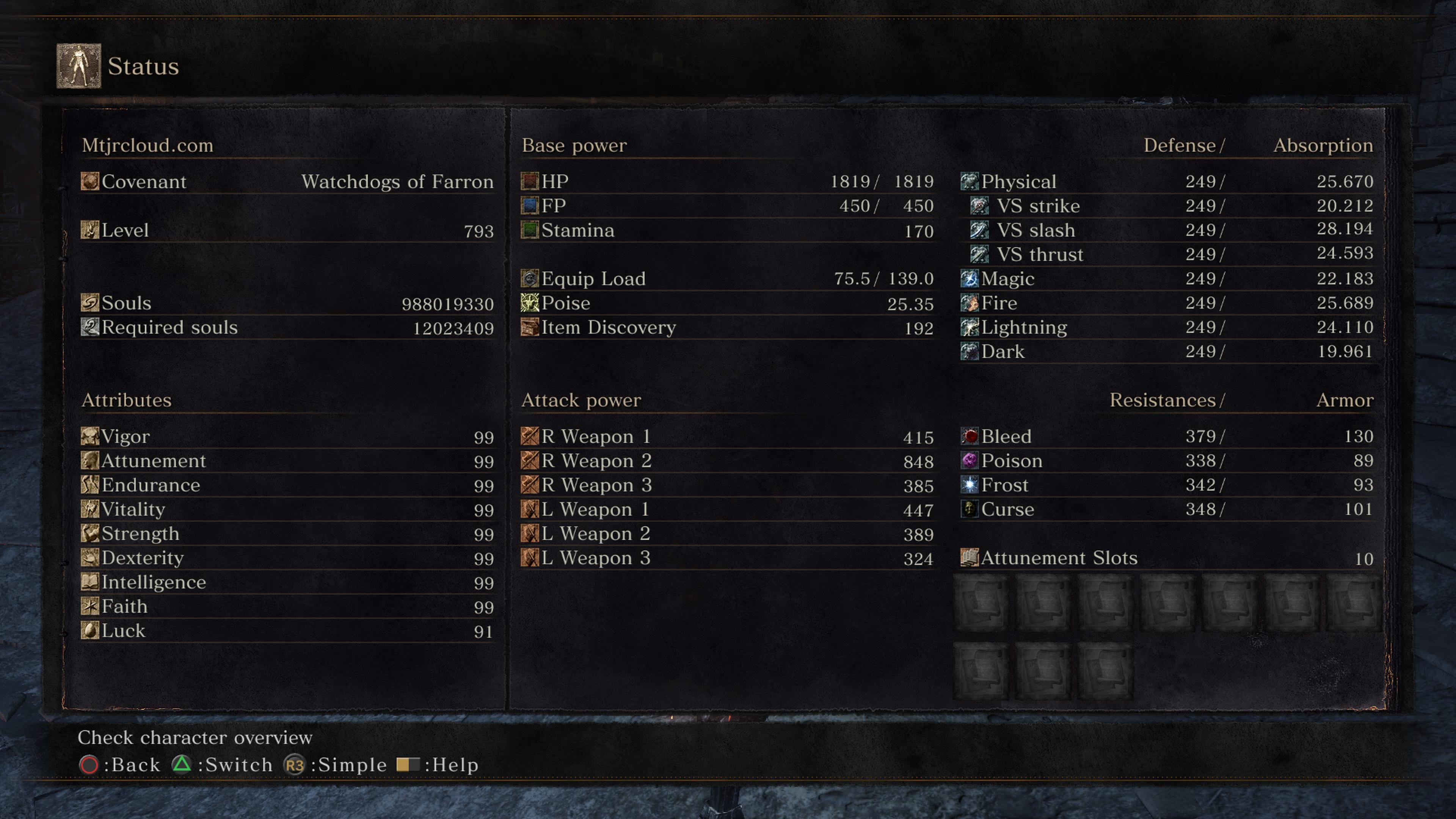 - شخصية بالمستوى اللانهائي ( اللاعب لا يموت ولا يتعب ) + سولز 999999999