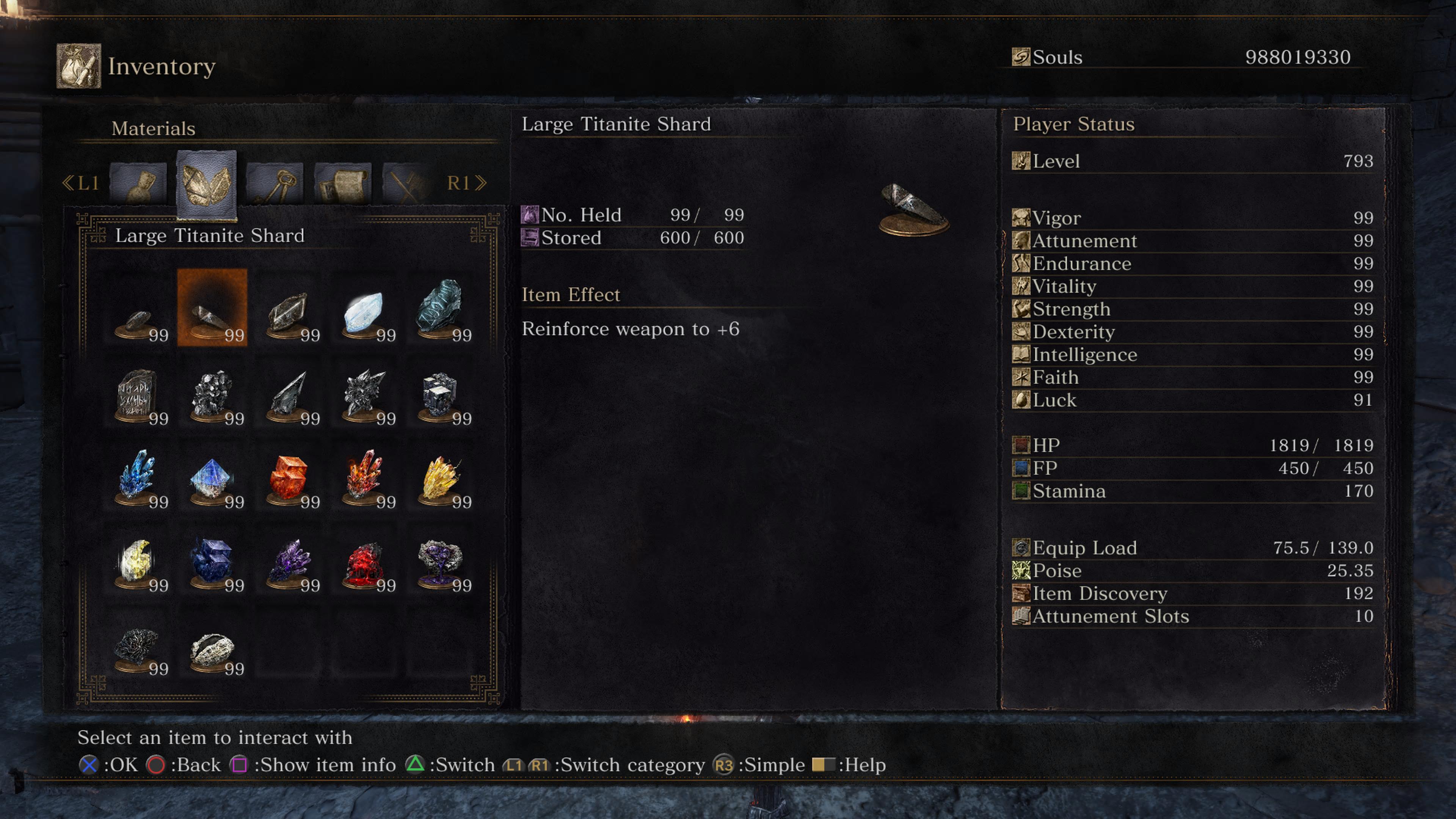 - جميع احجار التطوير عدد 99 + 600 في المخزن .