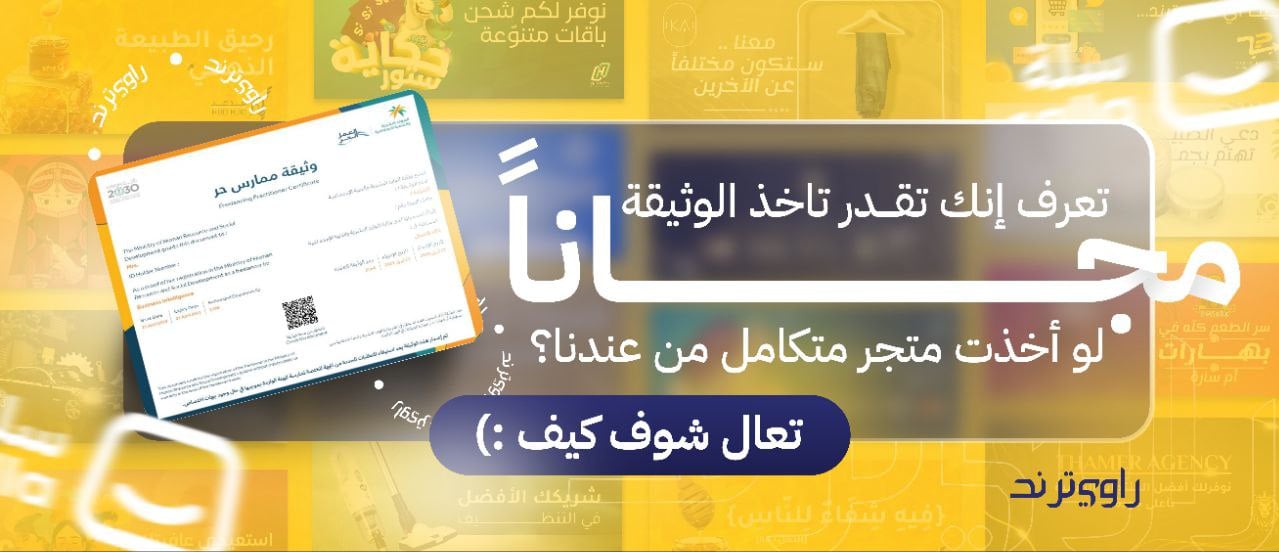 هاام ولفترة محدودة 🔥 : يمكنك الحصول على شهـ.اد.ة العـ.مـ.ل الـ.حـ.ر مجاناً عندك طلبك لخدمة إنشاء متجر متكامل على سلة ( اضغط هنا لمشاهدة لتفاصيل )