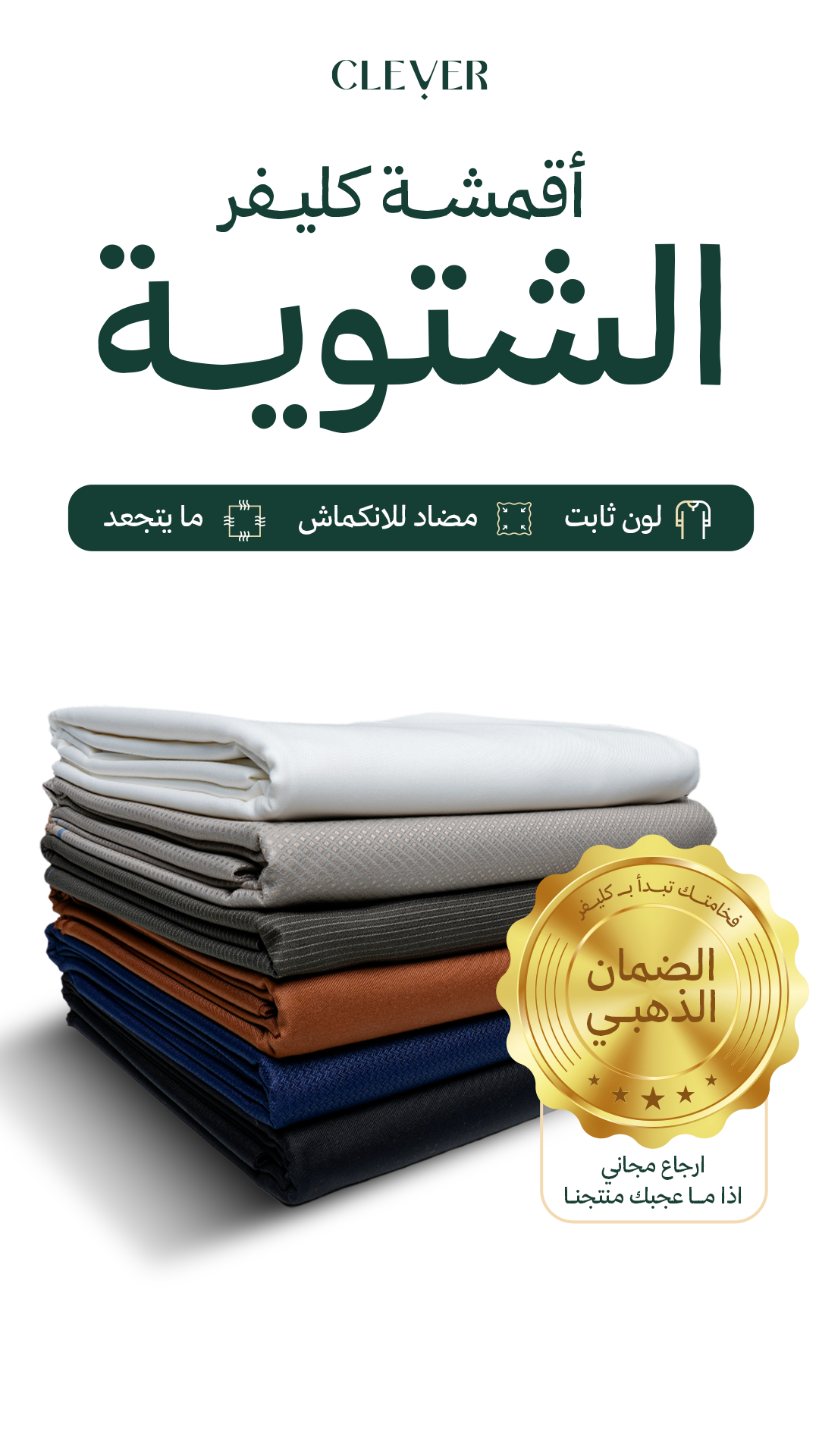 فخامتك تبدا بكليفر . متخصصون في مجال الأقمشة الرجالية منذ 20 عاما ونسعى دائما لاختيار الاقمشة التي تليق بجميع المناسبات والمواسم وكذلك الحياة العملية واليومية.