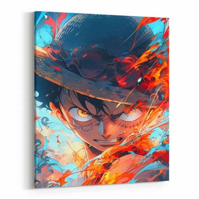 لوحة كانفاس على إطار خشبي بتصميم قوة لوفي أنمي وان بيس