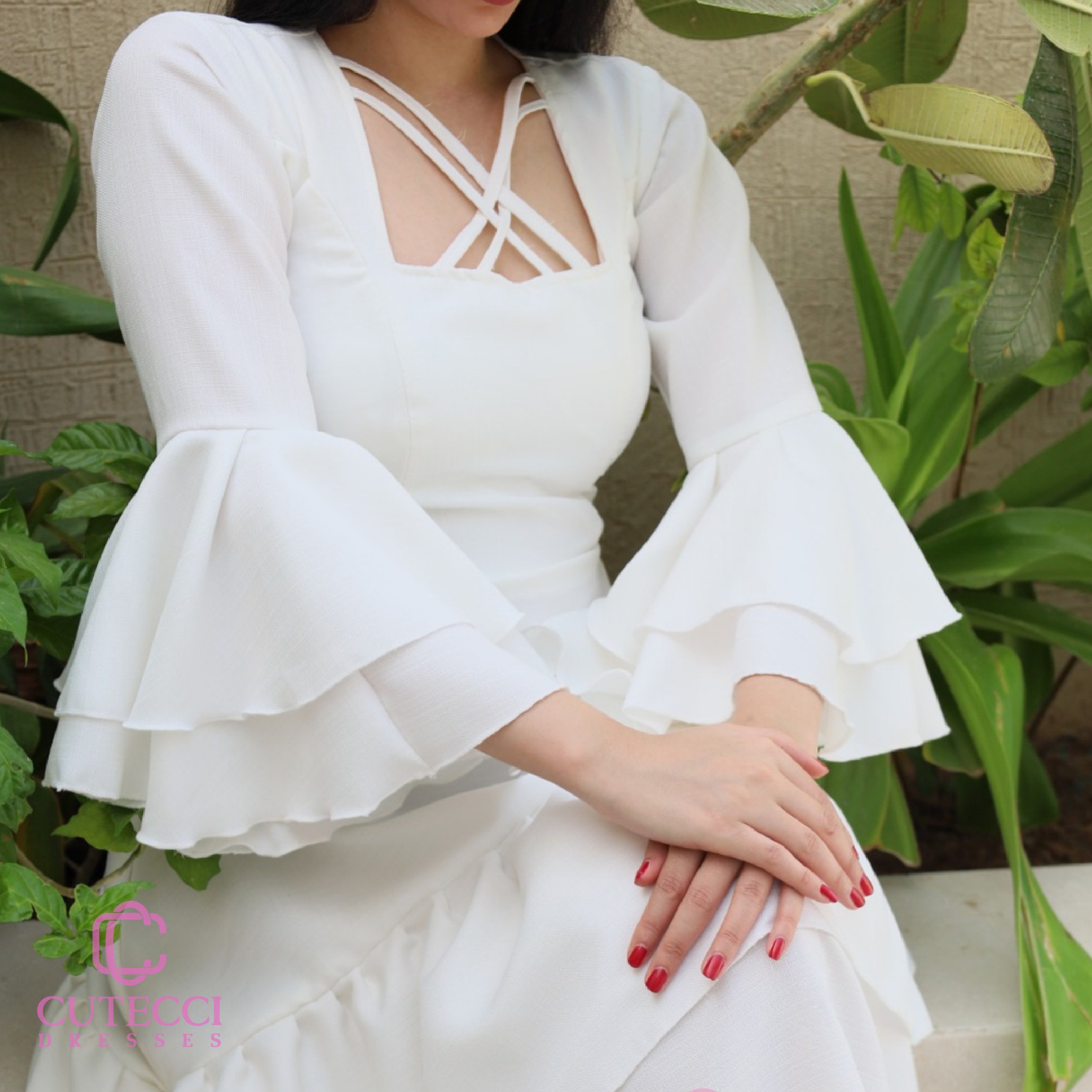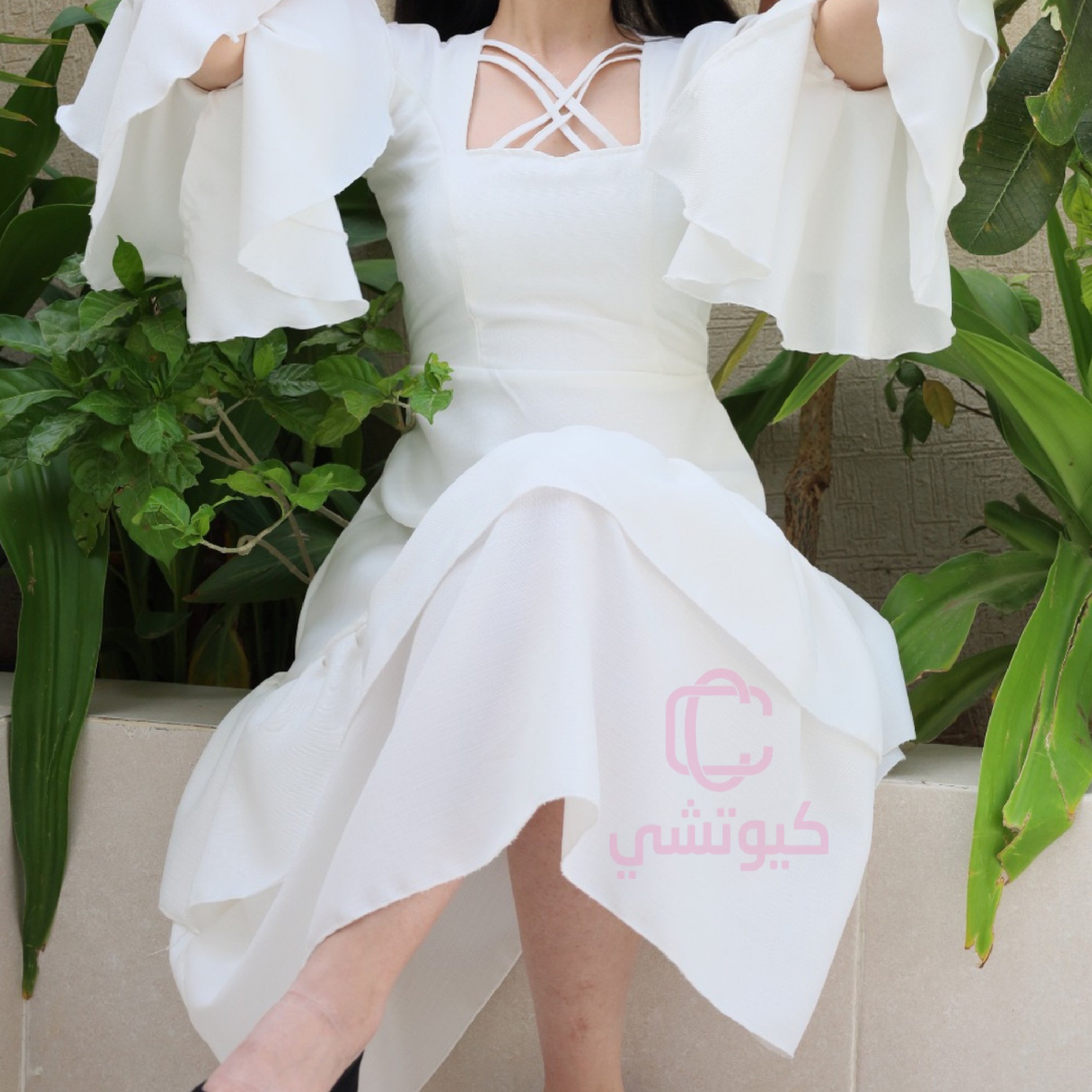 تألقي بإطلالة ناعمة مع فستان سهرة أوف وايت طبقات ناعمة من Cutecci، تصميم طبقات أنيق مع أكمام واسعة مثالي لمناسباتك المميزة وسهراتك الأنيقة.