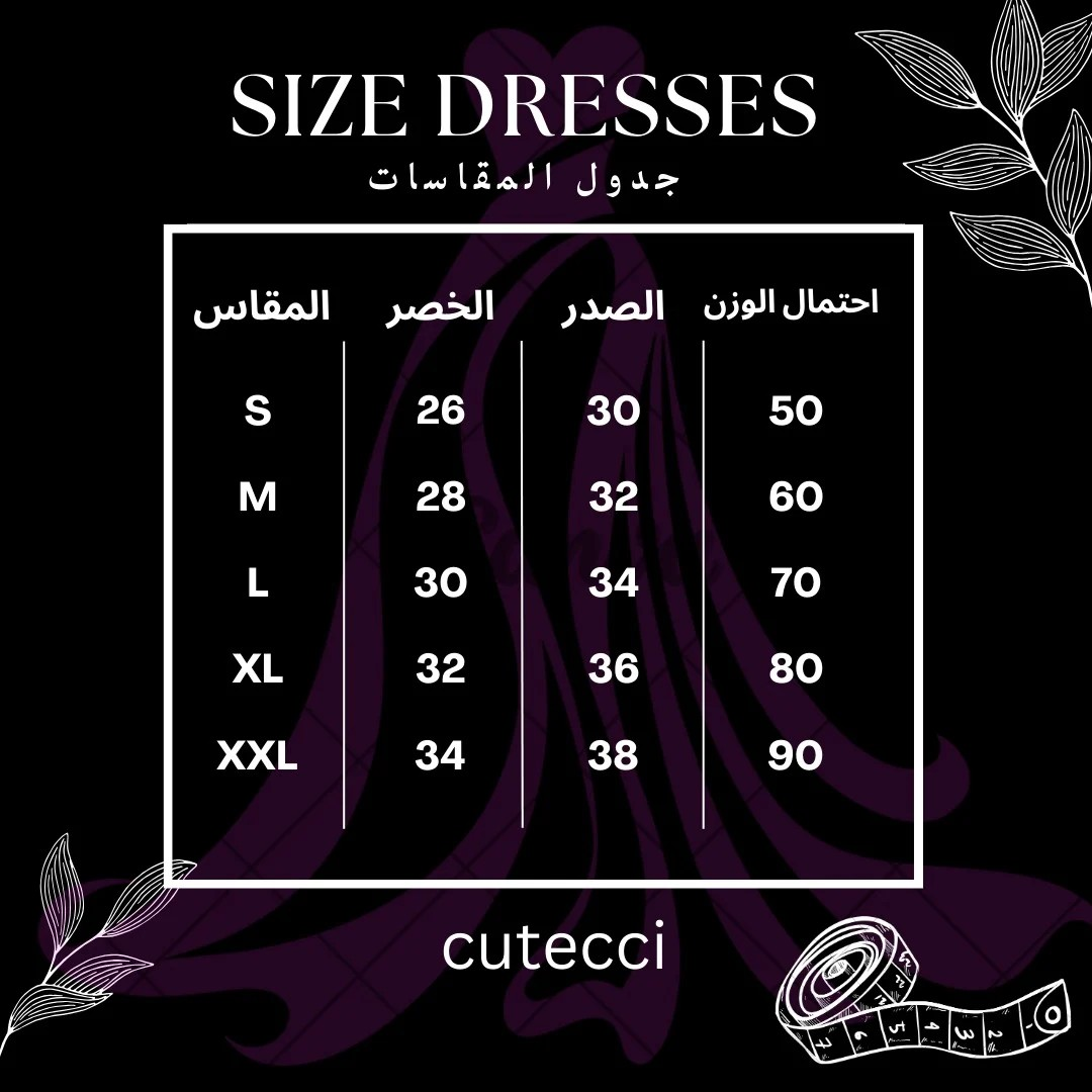 - الخصر: حددي مقاسك وفقًا لأضيق نقطة بين الصدر والورك لراحة وأناقة.