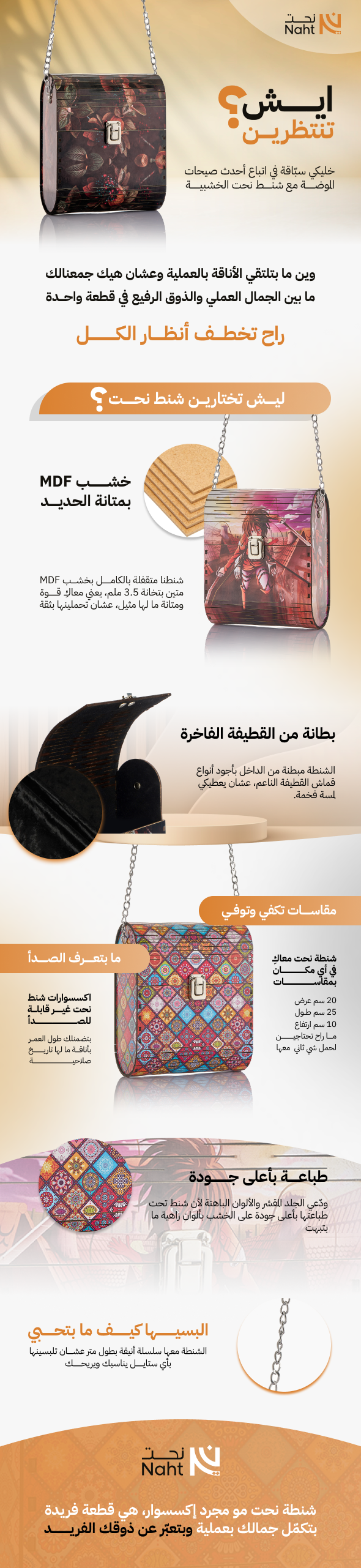 استمتع بأسلوب عصري يعكس شخصيتك الفريدة مع شنطة خشب كروس بتصميم ميكاسا المستوحاة من الشخصية الأسطورية في عالم الأنمي. هذه الحقيبة ليست مجرد وسيلة لحمل أغراضك، بل قطعة فنية تعبر عن شغفك وتمنحك مظهراً استثنائياً يجمع بين القوة والأناقة. مصنوعة من خشب MDF عالى الجودة، مع نقش دقيق يُبرز تفاصيل تصميم ميكاسا بأسلوب فني مذهل، مما يجعلها خياراً مثالياً لمحبي الأنمي ومحبي التميز في الإكسسوارات.