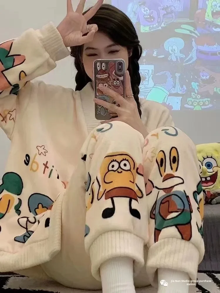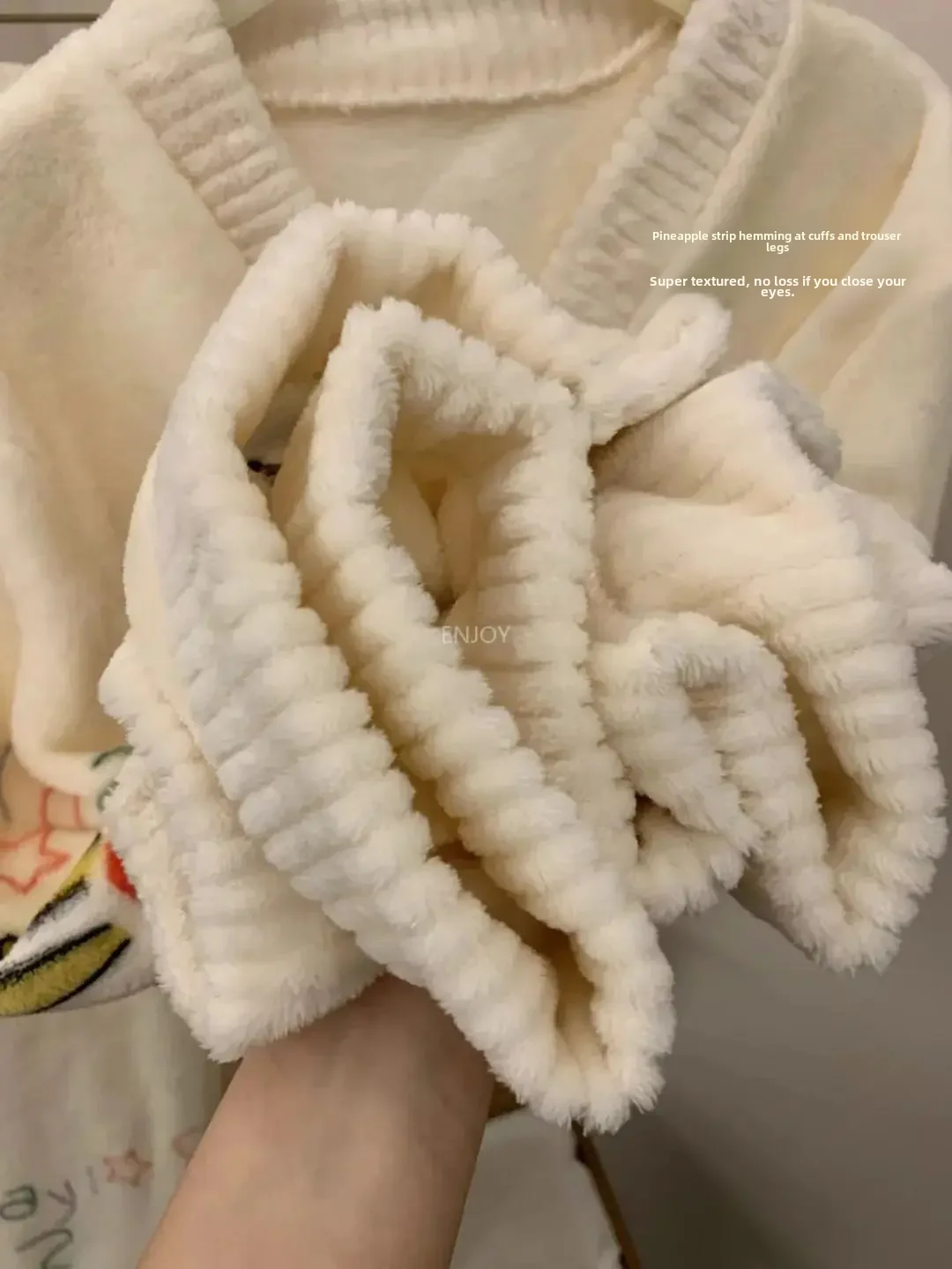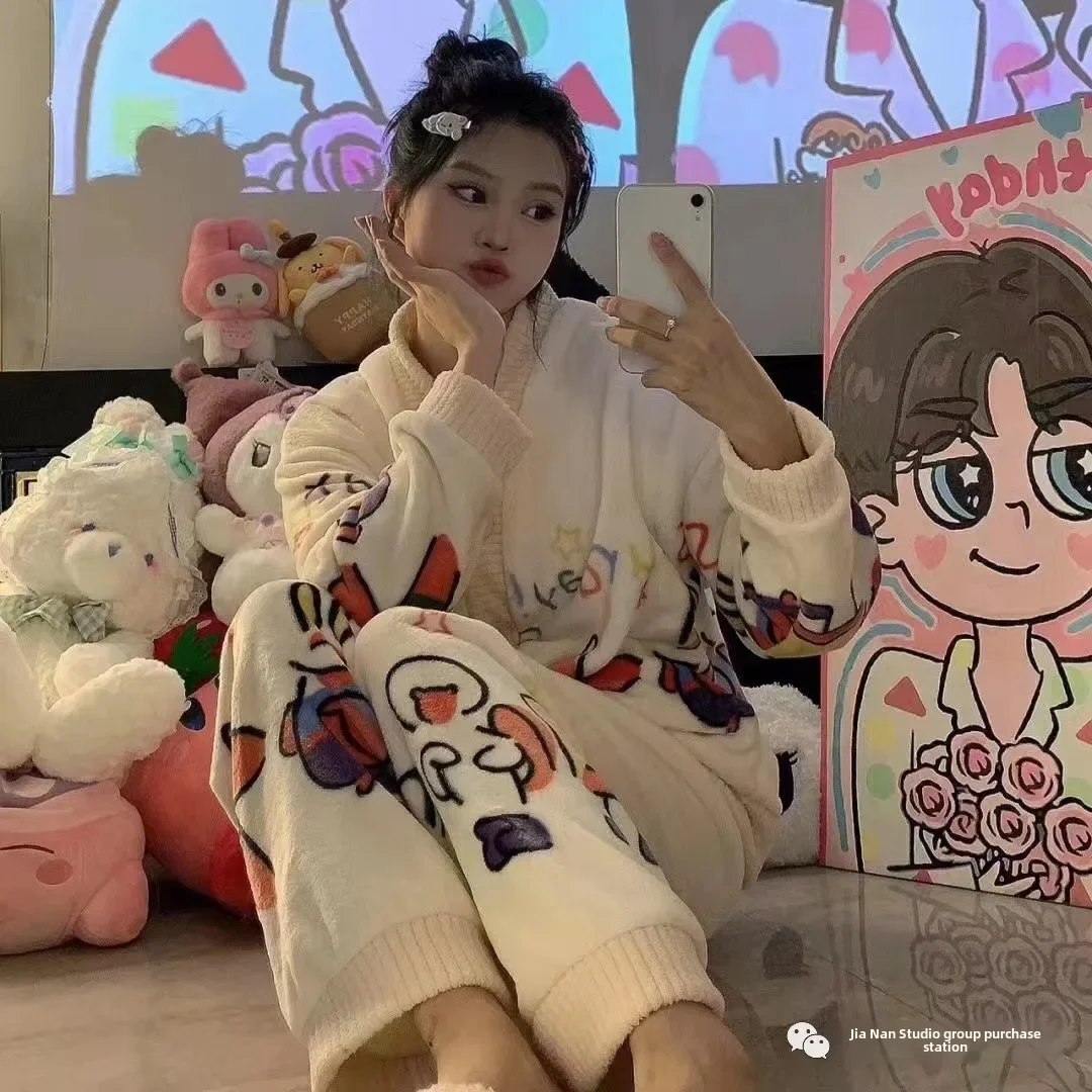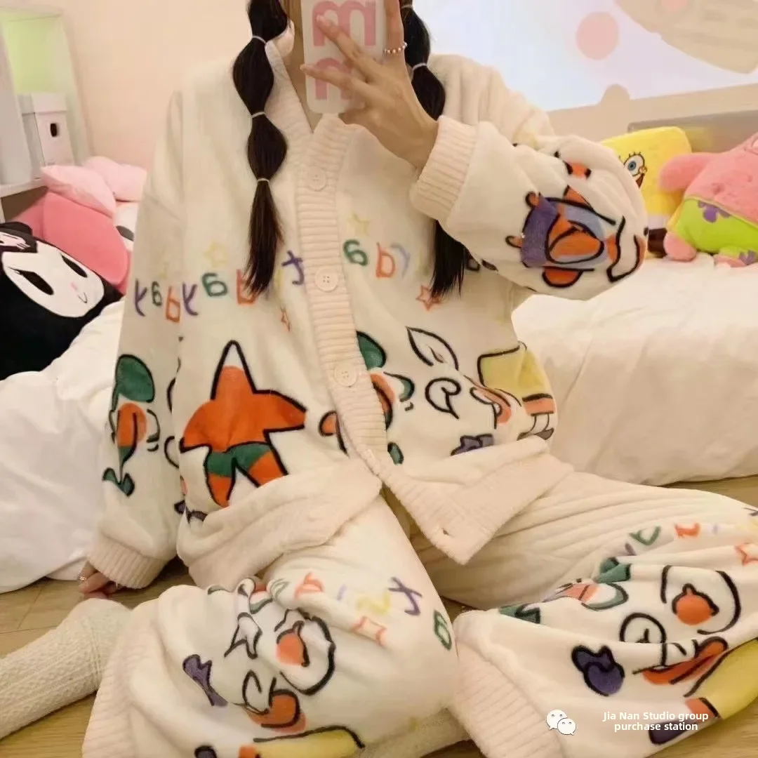 كارديجان نسائي مبطن بالصوف المرجاني ، كارديجان سميك ، كرتون فضفاض ، ملابس نوم دافئة ، رقبة حرف V ، ملابس خارجية ، مرجانية ، شتوية