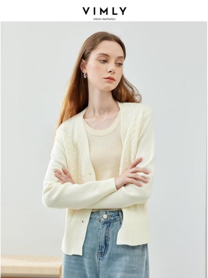 كارديجان محبوك سميك بنمط فيملي ، سترة برقبة مشمش ، معطف بصف واحد ، ملابس تريكو عالية في الشارع ، ربيع ،