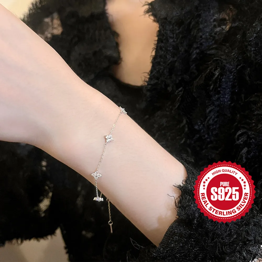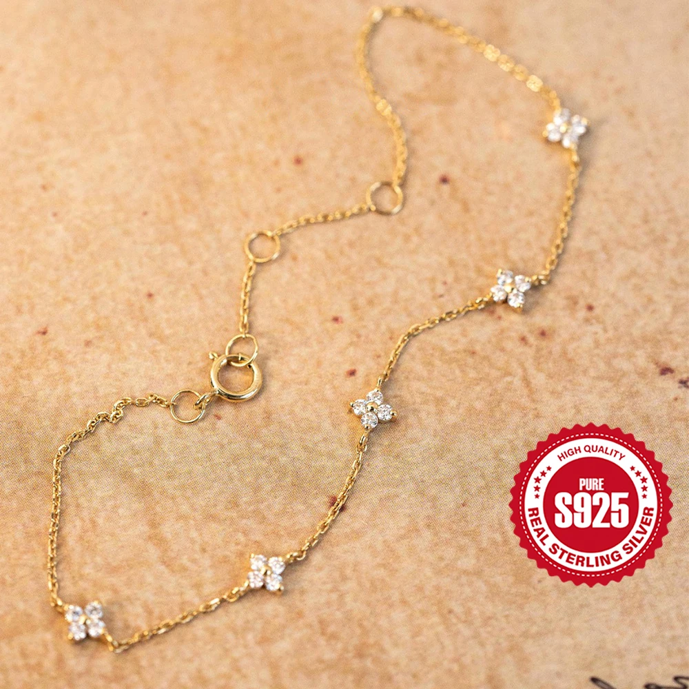 سوار من الفضة الإسترليني للنساء ، سلسلة زهور ، زركون ذهب عيار 18 قيراط ، سوار عصري ، مجوهرات راقية ، هدية حفلات