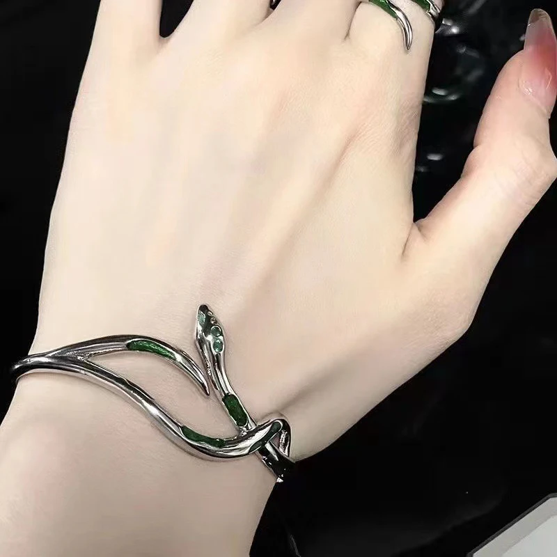 سوار ثعبان فاتن للنساء ، أساور كريستال ، خاتم مفتوح ، طراز مظلم ، هيب هوب ، شخصية ، مجوهرات أنيقة ، هدية حفلات