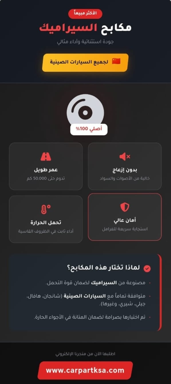 الأمان: توفر أداءً موثوقًا وقويًا للفرامل، مما يعزز من سلامة القيادة.