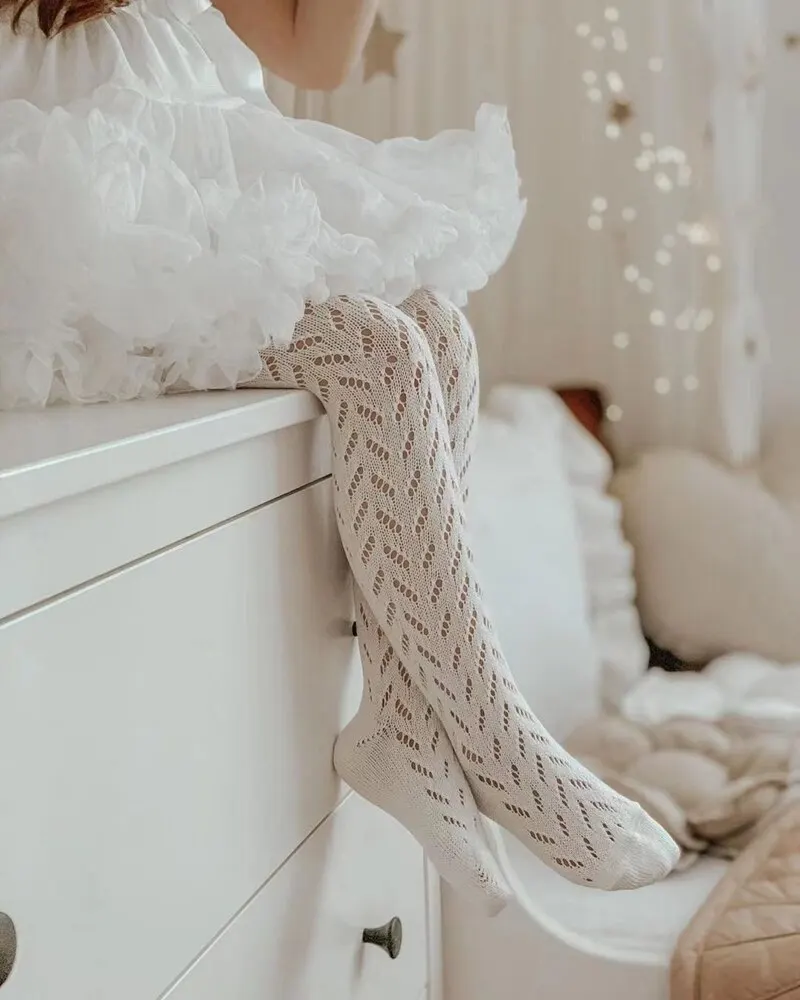 • أجوف من نمط شبكة :تتميز هذه الجوارب بنمط شبكي مجوف ، وتضيف لمسة فريدة وأنيقة إلى خزانة ملابس طفلك الصيفية.