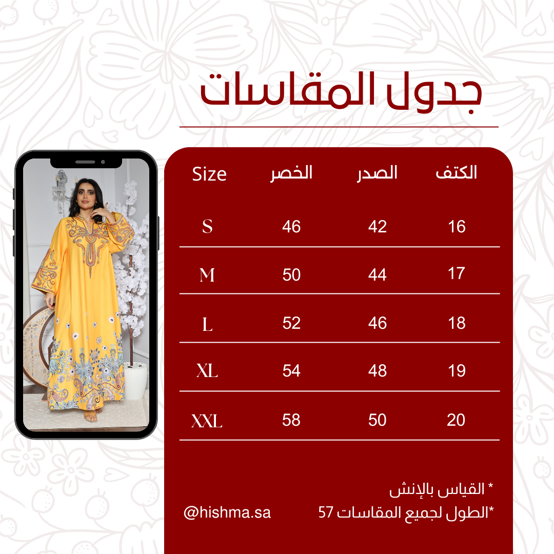 جلابية بخامة باربي بتطريز راقي في الرقبة والكم وإضافة فصوص كريستال تعكس الفخامة والرقي بتفاصيلها الساحرة وخامتها الناعمة تصميم يجمع بين الأناقة والراحة ليمنحك إطلالة راقية في مناسباتك الخاصة وأيامك المميزة مع ألوان جذابة وتطريز فاخر